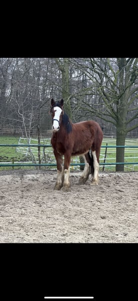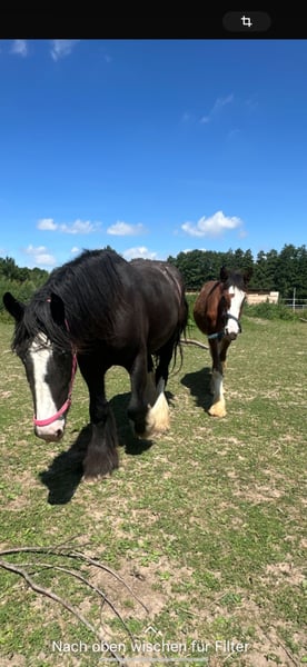 Wir suchen ein liebevolles Zuhause für unseren verspielten und treuen Clydesdale. Er zeigt sehr liebevollen Umgang, ist brav beim Hufe machen und folgt einem wie ein Hund – ein echter Freund im Alltag. Charakter & Highlights: • Brav im Umgang, menschenbezogen und sanft • Brav beim Hufe machen – unkompliziert in der Pflege • Rangniedrig, nicht hengstig – ideal für Herde oder Familienstall • Verspielt, neugierig und aufgeschlossen • Sucht ein Zuhause mit 5-Sterne-Qualität, in dem er geliebt wird Dieser Clydesdale ist ein wahrer Herzensfreund, der Ruhe, Freude und Stärke in jeden Stall bringt – perfekt für Freizeit, Familie oder sanfte Arbeit.