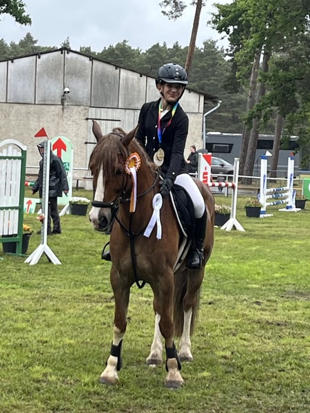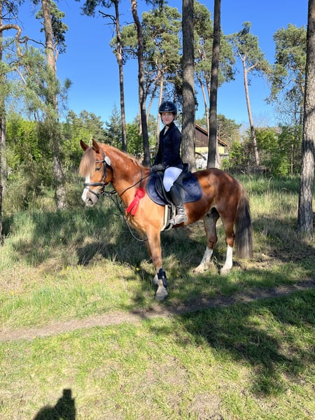 Liebenswerter Ponywallach sucht neues Zuhause, Schwerenherzens trennen sich die Wege von Buddy und seiner Reiterin nach über 3 Jahren, aufgrund eines Umstieges auf Großpferde. Buddy und seine Reiterin konnten sich auf ihrer langen Reise einige Erfolge im Springen und in der Dressur bis zur Klasse E sichern. Im Jahr 2025 folgte dann die „Umschulung“ zum Geländepferd und schnell zeigte sich: das ist Buddys Lieblingsdisziplin. Er läuft mit viel Freude durch den Geländeparcours, zieht immer auf die Sprünge an und er unterstützt den Reiter sehr gut, falls ein Sprung mal nicht so gut passt. Außerdem ging Buddy in 2024 seine ersten A Springen und fand auch dort seinen Spaß. Buddy ist ein sehr Charakterstarkes Pony, was dennoch für jeden Spaß wie Kostümspringen, Ausritte usw. zu haben ist. Er benimmt sich im Gelände sehr artig, ist Straßensicher, kennt Traktoren, bellende Hunde und hat keine Scheu neue Dinge kennenzulernen. Buddy ist ein Pony mit viel Go welches gut unterstützt werden sollte. Bei Interesse können Sie sich gerne bei uns melden!