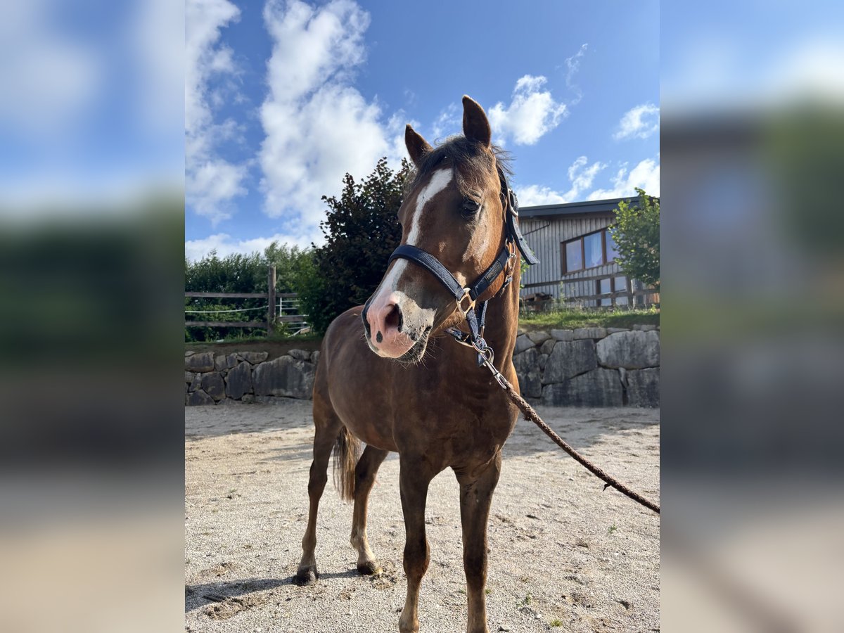 Pony Wallach 4j. Dunkelfuchs Stm. Ca 135cm., kompakter, gefälliger, rittiger Typ mit bestem Charakter und viel Potential für alle Sparten; er ist immer freundlich, neugierig, lernt schnell , ist unerschrocken - ein vielversprechendes Jungpferd, der sich sowohl in Dressur als auch im Springen schnell weiter entwickeln wird, im Umgang unkompliziert und gehorsam, brav und gelassen; - Ein Traumpony für die Zukunft! Wurde leicht angeritten und zeigte sich immer vorbildlich! schmiede u verladefromm, in der Herde verträglich, für Offenstrall geeignet