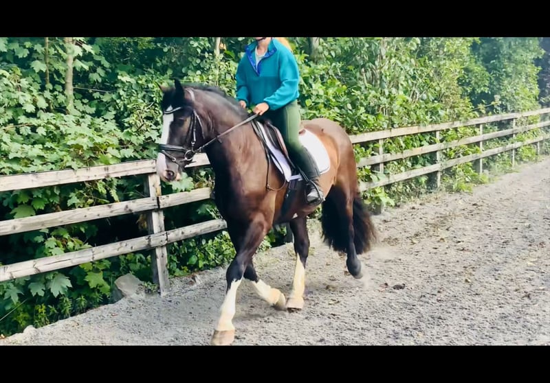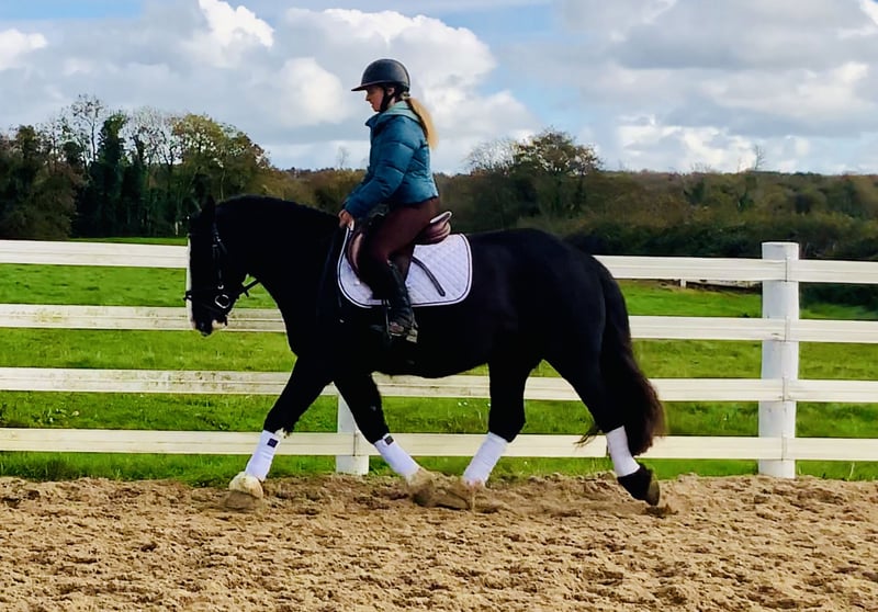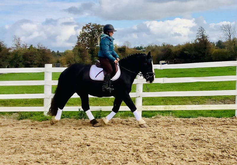 Henry | Aufstrebender 5-jähriger 15hh Schwarzer Cob-Wallach | Stilvoll, Intelligent und Vielseitig Wir stellen Henry vor, einen aufstrebenden fünfjährigen schwarzen Cob-Wallach mit Ausstrahlung, Talent und einem wunderbaren Charakter. Mit 15hh ist Henry ein schön gebauter, gut proportionierter Cob mit einem starken, kompakten Körperbau und dem typischen Cob-Charme. Er ist mutig, selbstbewusst und vorwärtsdenkenden, gleichzeitig aber auch umsichtig und zuverlässig, was das Reiten zu einem echten Vergnügen macht. Henry bewegt sich natürlich geschmeidig, ausgewogen und ausdrucksstark. Er liebt die Arbeit unter dem Sattel und reagiert aufmerksam auf alles, was von ihm verlangt wird. Sein Wille, zu gefallen, zeichnet ihn besonders aus. Egal ob Dressur, Springen oder Ausritte, Henry geht jede Aufgabe mit Begeisterung an. Er ist mutig über Hindernisse und zeigt großes Potenzial für verschiedene Disziplinen, von Reitclub-Aktivitäten über Showeinsätze bis hin zu einem aktiven, vielseitigen Freizeitpferd. Dieser Cob ist auch am Boden unkompliziert. Henry lässt sich leicht fangen, verladen und beschlagen und geht gelassen mit neuen Situationen um. Beim Ausreiten ist er sicher – sowohl allein als auch in der Gruppe – und völlig verkehrssicher. Seine ruhige, ausgeglichene Art in Kombination mit seinem mutigen Wesen macht ihn zu einem sicheren und angenehmen Partner für erfahrene Freizeitreiter ebenso wie für versierte Amateure. Henry hat keinerlei Stallvices und steht für jede tierärztliche Untersuchung offen. Der Transport zu Ihrem Stall innerhalb des Vereinigten Königreichs ist im Preis inbegriffen, sodass der Umzug stressfrei verläuft. Mit seiner Kombination aus Stil, Talent und einem liebenswerten Wesen ist Henry ein echter Cob, der eine vielversprechende Zukunft vor sich hat und jedem Reiter Freude bereiten wird. Um Henry in Aktion zu sehen, scrollen Sie bitte nach unten, um sein Video anzuschauen. Für weitere Informationen oder zur Vereinbarung eines Besichtigungstermins erreichen Sie mich jederzeit unter +353 86 807 7626 oder per E-Mail an gertytynan@gmail.com.