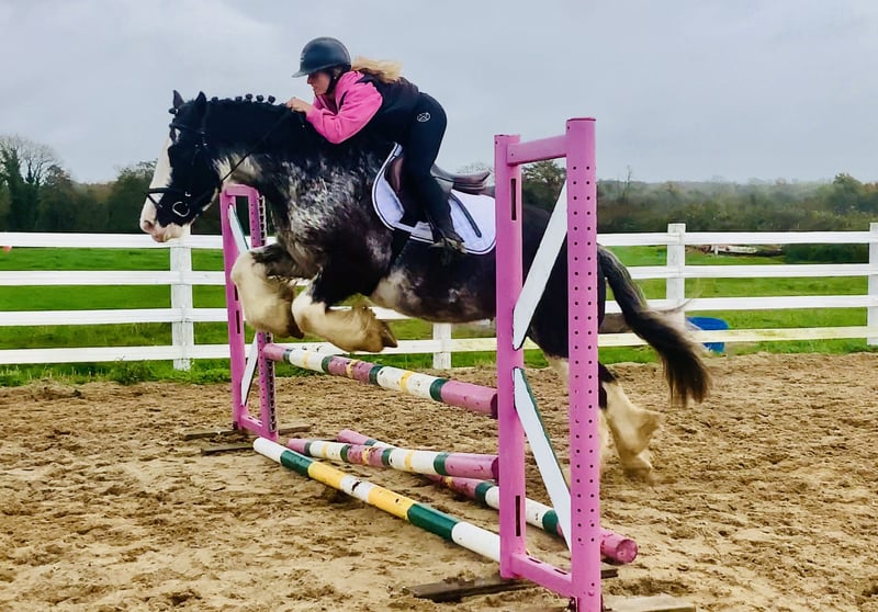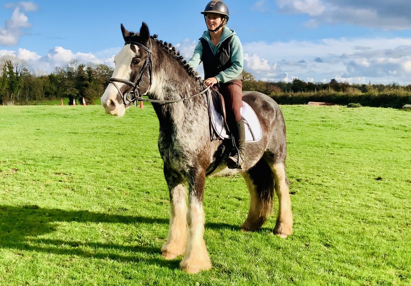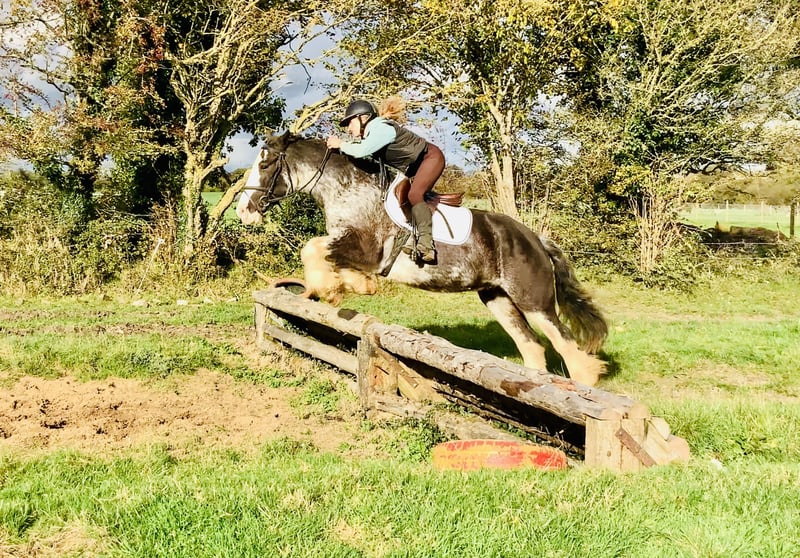 Cian, ein wirklich auffälliger, 4-jähriger (bald 5-jähriger) Blue Roan Cob Wallach, derzeit ca. 1,57 m groß und noch im Wachstum. Cian ist eine echte Schönheit – der klassische „vier Beine an jeder Ecke“-Typ mit hervorragender Konformation, starkem Fundament und einer außergewöhnlichen, auffälligen Fellfarbe, die ihn überall herausstechen lässt. Er ist genau die Art Pferd, nach der man sich umdreht – mit Ausstrahlung, Persönlichkeit und einem freundlichen Blick, der seine sanfte Natur widerspiegelt. Cian hat ein wundervolles Temperament. Er ist ein freundliches, gutmütiges Pferd, das Aufmerksamkeit liebt und einfach ein Vergnügen ist, im Stall zu haben. Unter dem Sattel ist er ruhig und leicht zu reiten, mit einer sehr willigen und ehrlichen Einstellung, die ihn zu einem echten Partner und Freude für seinen Reiter macht. Er arbeitet schön im einfach gebrochenen Gebiss, reagiert gut auf die Hilfen, ohne je scharf oder übermütig zu sein. Er ist nicht faul – er bietet einfach jedes Mal einen angenehmen, unkomplizierten Ritt. Unter dem Sattel zeigt Cian großes Potenzial für die Zukunft. Er wurde sorgfältig und korrekt ausgebildet und hat eine solide Grundlage in der Dressurarbeit. Er bewegt sich in drei ausgewogenen, bequemen Grundgangarten und beginnt, eine natürliche Losgelassenheit und einen gleichmäßigen Rhythmus zu zeigen, die sich mit Zeit und Erfahrung weiterentwickeln werden. Über Sprüngen ist er sehr ehrlich und mutig – er nimmt alles in seinem Schritt und hat Freude am Springen. Er zeigt großes Potenzial für Jagden, Geländereiten und allgemeine Aktivitäten im Reitverein. Im Gelände ist Cian ein absoluter Star. Er geht allein oder in der Gruppe, ist verkehrssicher und vernünftig in offenem Gelände. Er geht bereitwillig über Gräben, durch Pfützen und über Felder – immer neugierig und mit Freude an seiner Umgebung. Er ist genau das Pferd, das jeden Ausritt zu etwas Besonderem macht – egal, ob es ein entspannter Spaziergang oder ein Tag auf der Jagd ist. Cian würde in eine Vielzahl von Zuhause passen. Er wäre ein tolles Mutter-Tochter-Pferd, eine fantastische Ergänzung für eine Reitschule oder ein großartiger Allrounder für jemanden, der einen zuverlässigen, schönen Partner zum Ausreiten, Jagen oder für lokale Turniere sucht. Er ist vielseitig, ehrlich und hat ein Traumtemperament. Er ist unkompliziert beim Beschlagen, Verladen, Einfangen, Scheren, Reiten und im Straßenverkehr. Er hat keine Stallmängel, ist offen für jede tierärztliche Untersuchung und bereit, in sein neues Zuhause zu ziehen. Der Preis beinhaltet die Lieferung zu Ihrem Hof überall im Vereinigten Königreich, und wir bieten einen Umtausch an, falls Sie nicht vollständig zufrieden sind. Scrollen Sie nach unten, um sein Video anzusehen und zu sehen, wie besonders er in Aktion ist. Für Anfragen oder um einen Besichtigungstermin zu vereinbaren, rufen Sie mich gerne jederzeit unter 00353 868077626 an oder schreiben Sie eine E-Mail an gertytynan@gmail.com. Cian ist wirklich das komplette Paket – hübsch, freundlich und ehrlich – ein seltener Fund, der für jemanden der absolut perfekte Partner sein wird.