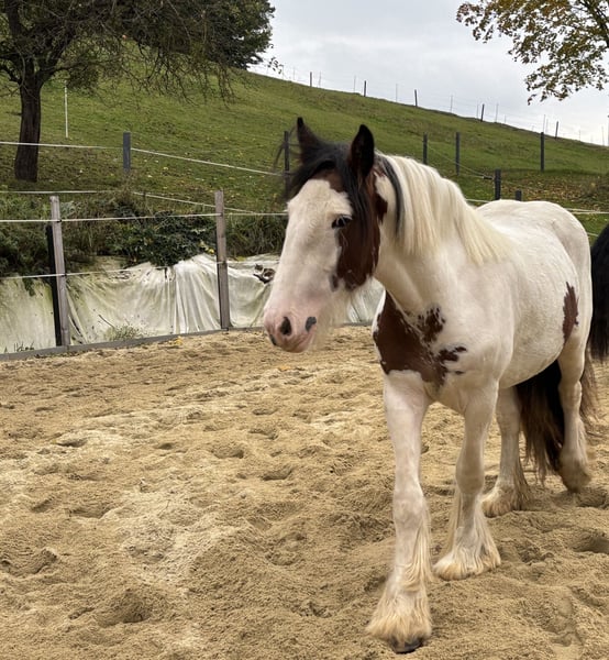 Birchlane Sassy Pants, oder Sissy, ist eine wunderschöne Fuchsstute, die ich in Irland gekauft und nach Österreich importiert habe. Ich erwarb sie in Irland / Kerry bei einem irischen Gypsy Cob Zuchtbetrieb, der sich auf die Zucht und Beschaffung von echten Cobs in ausgewaschenen Farben spezialisiert hat. Sissy ist jetzt 2,5 Jahre alt und wird im nächsten Frühjahr 3 Jahre alt. Sie ist am Longe, macht Spaziergänge, ist an andere Pferde gewöhnt, lebt in einer Herde, kennt den Hufschmied, ist mit landwirtschaftlichen Maschinen vertraut, lässt sich problemlos striegeln und pflegen. Sie hat eine tolle Bewegung und lernt schnell. Ein absolut schönes Pferd, das sowohl als Zuchtstute als auch für jede Reitdisziplin geeignet ist. Derzeit ist sie knapp 1,50 m groß und wird voraussichtlich 1,55 m erreichen. Sie ist geimpft, besitzt einen Pass und Decken. Aufgrund familiärer Veränderungen habe ich mich entschieden, sie zu verkaufen.
