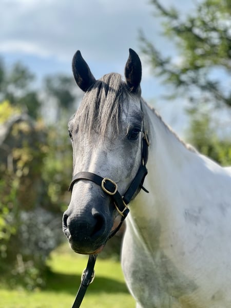 Top Class Blue & White Mare – 3 year old 14.3hh Gorgeous 3-year-old blue & white mare with serious show ring potential. Standing at 14.3hh, she is straight ,correct, and a lovely mover. Lovely model would excel in a show ring. Also showing potential over a pole • 3 years old, 14.3hh • Blue & white, beautifully marked • Straight, correct conformation • Showing potential loose jumping • Ready to produce A quality blank canvas for someone to bring out her full potential. 📍 Galway, Ireland 🇮🇪 📩 WhatsApp or Call for more info