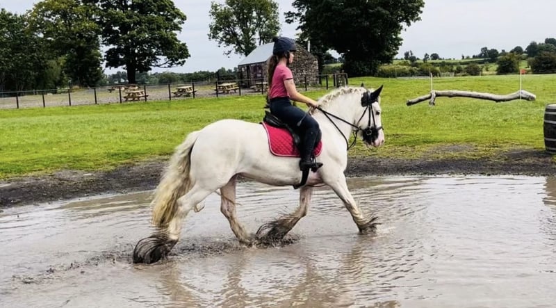 Zum Verkauf steht diese absolute Ausnahme Stute Traumhafter kann ein Cob gar nicht sein- Tolle Aufmachung mit guter Einstellung am Sprung, aber auch in der Dressur motiviert und möchte gefallen. Ein echtes Allrounder Pony mit toller Arbeitseinstellung und guten Nerven. Sie ist schon mehrmals auf VS Strecken unterwegs gewesen und wurde in Irland auch auf Turnieren bis 90cm vorgestellt! 6 Jahre alt Ca 158 Stm sehr gut abdeckend Sie ist absolut nervenstark, zuverlässig und brav im Gelände! Absolutes Traumpferd das man so schwierig anderweitig finden wird!