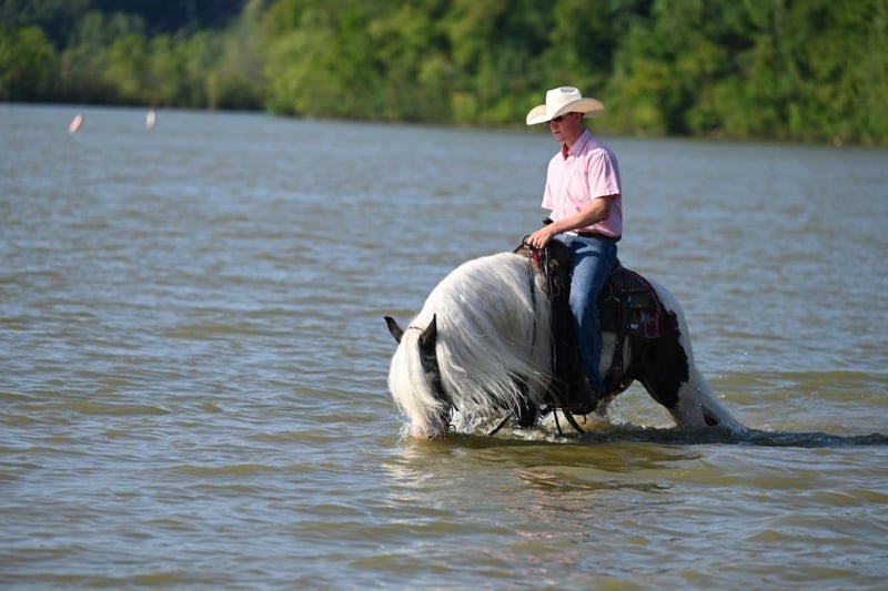 Are you looking for that Beautiful individual that will make you look good anywhere you go!! Take a look at DGR Flash Arrow aka (Arrow)! What a beautiful sweet fun horse Arrow is. Arrow is a 2016 registered Gypsy vanner Gelding that stands 14 hands tall and weighs 1,000 lbs and is a true gentleman! Arrow has been there done that from trail riding to gathering cattle to working in the arena he’s been there done that and is willing about doing it. Arrow is the perfect horse for the whole family he’s safe for any level of rider or from beginner to advanced. You can go show him tomorrow or put your friends on him who have never rode and he will be a gentleman. Arrow knows his leads and lopes beautiful circles and moves off your legs like a QH would sidepasses half passes pivots ect. He is great to be around in the barn and has the best personality and perfect attitude to be around he’s quiet in his stall or out in the pasture. Arrow is good to shoe load bathe ect. We can help arrange shipping anywhere for you feel free to come see this beautiful boy at our farm we know you will fall in love with Arrow! He sells 100% in every way he is a true gentleman and we know you would love owning Arrow he will put a smile on your face even on a bad day.