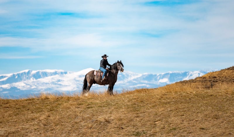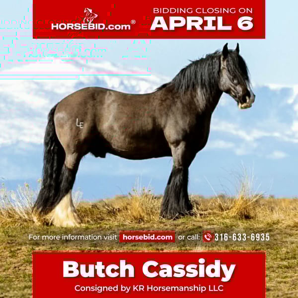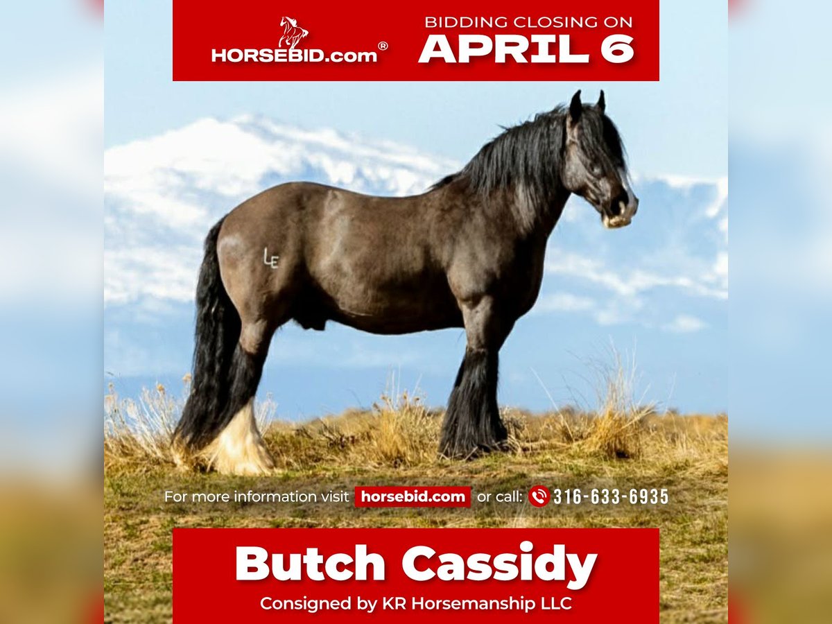 🌟𝑨𝒑𝒓𝒊𝒍 𝐀𝐋𝐋 𝐒𝐓𝐀𝐑 𝐋𝐈𝐍𝐄𝐔𝐏🌟 Happening now thru MONDAY | APRIL 6th - Available EXCLUSIVELY on HorseBid's website! For more details and to register visit: www.Horsebid.com CONSIGNOR CONTACT: KR HorsemanshipLLC 316-633-6935 LOCATION: Clearmont, WY BREED: Gypsy vanner REGISTERED: Yes REGISTERED NAME: Lions king Balious COLOR: Black HEIGHT: 14.3 AGE: 11 GENDER: Gelding Meet Butch Cassidy — the kind you don’t come across twice. Standing 14.3 hands tall and dressed in a striking coal black coat, this 11-year-old gelding is the definition of a seasoned, dependable ranch horse with the kind of resume that speaks for itself. Butch Cassidy has spent his life being used the right way. He’s seen long days, tough country, and real work — the kind that builds a horse you can truly rely on. Whether you’re checking cattle, covering big country, or just wanting a steady, trustworthy partner, he’s been there and done it. He rides around quiet, confident, and sure-footed. Crosses water without hesitation, handles rough terrain like a pro, and has even been used to drag valves to the fire — showing his grit, willingness, and level-headed nature in high-pressure situations. Not only does he ride, but he also drives, adding even more versatility to his already impressive skill set. Butch Cassidy is gentle, honest, and free of vices. No funny business — just a solid, good-minded gelding you can saddle up and go to work or enjoy a laid-back ride. If you’re looking for a horse with experience, heart, and a reputation you can trust, Butch Cassidy is ready to go to his next job. Horses like him are getting harder and harder to find. Best suited for an intermediate rider.
