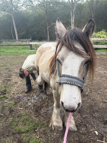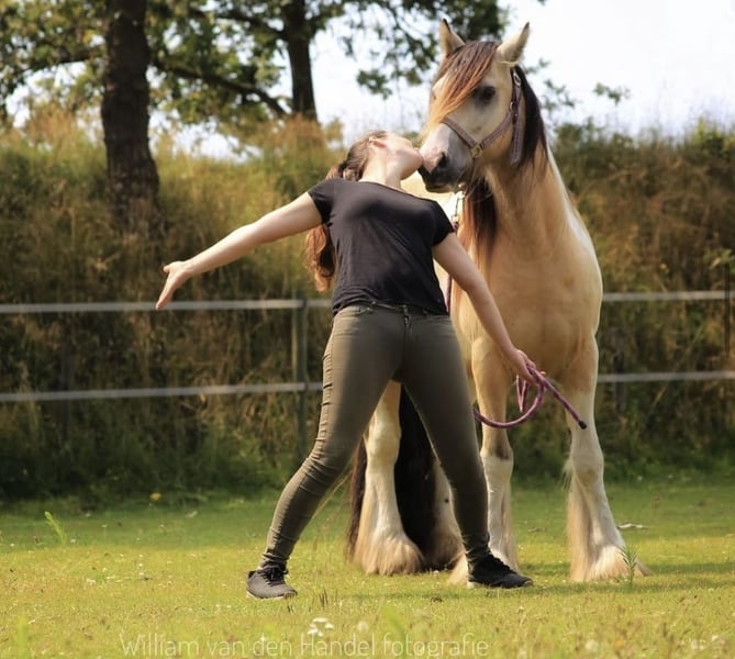 💛 Te koop: Wimpy (Norman) – prachtige buckskin bonte Tinker ruin (2011) 💛 Wimpy is een super knappe, sensibele Tinker met een zacht hart. Hij is lief, eerlijk en gevoelig, maar heeft tijd nodig om je te leren vertrouwen. Het is geen pony waarbij je opstapt en weg rijdt — hij vraagt rust, geduld en begrip. Hij is verkeersmak, braaf op de trailer en altijd vriendelijk in de omgang. Nooit geschopt of gebeten en niet bang voor kinderen of honden. Onder het zadel heeft hij een ervaren, rustige ruiter nodig; bij spanning kan hij gaan rennen of springen, maar met zachte hulpen loopt hij fijn en nageeflijk. Er is veel met hem gewerkt vanaf de grond: los werk, dubbele lijnen en klikkertraining. Met structuur doet hij het goed — die heeft hij nodig om te ontspannen. De verkoop valt me zwaar, maar door het wegvallen van zijn verzorgmeisje en het ontbreken van een echte klik gun ik hem een plek waar hij wel volledig tot zijn recht komt. ✨ Wimpy zoekt iemand die zijn tijd wil nemen en een band wil opbouwen. Voor die persoon is hij een ontzettend lieve en bijzondere pony. ✨ Is al geruime periode niet meer onder het zadel vanwege spanning en vertrek van zijn verzorgster.