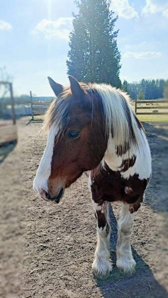 Our handsome Tinker mix gelding Bobby (chestnut with white markings, 15 years old, 15.3 hh) is looking for a new home with people who approach him with empathy and trust. I have worked intensively with Bobby from the ground, including lots of liberty work, and regularly took him on rides as a lead horse in the terrain. Bobby is very motivated, eager to learn, and works joyfully. He is in excellent condition, very social, and gets along well with both mares and geldings. He feels comfortable in small and large herds. In 2023, he was diagnosed with equine asthma. Thanks to adapted management (outdoor stable, haylage), he has been completely symptom-free since then. Regular care (vaccinations, dental check, deworming, hoof care) has been consistently maintained. All equipment can be taken along with him. There is also the option to take over his current stable place. Priority over price – we only want the best home for Bobby. If you are genuinely interested, we look forward to hearing from you.