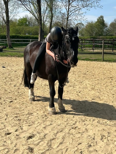 Schweren Herzens suchen wir für unseren wunderbaren Tinker-Wallach Shadow ein neues, passendes Zuhause. Shadow ist 2008 geboren und ca. 150 cm groß. Er ist beim Reiten kein Anfängerpferd. Beim Reiten auf dem Platz oder im Gelände ist er zunächst flott unterwegs und braucht einen selbstbewussten, klaren Reiter, der ihm Sicherheit vermittelt. Hat er jedoch einmal Vertrauen gefasst, zeigt er sich als echtes Seelenpferd, der mit seinem Menschen durch dick und dünn geht. Im Umgang mit Kindern ist er super lieb. Auch an der Longe oder beim Spazieren gehen ist er sehr entspannt. Er freut sich über Beschäftigung und Kuscheleinheiten. Leider passen Shadow und meine Tochter reiterlich nicht optimal zusammen, weshalb wir uns -trotz großer Zuneigung -dazu entschieden haben, für ihn ein Umfeld zu suchen, in dem er sein volles Potenzial entfalten kann. Shadow ist nicht Turniererfahren und eher ein Freizeitpferd. Außerdem ist er *Heuallergiker*, was bei uns jedoch Dank konsequenter *Heulage-Fütterung* hervorragend im Griff ist- derzeit bis gar nicht bemerkbar. Daher kommt für ihn ausschließlich ein *Offenstallplatz* infrage. Es handelt sich nicht um einen Notverkauf. Wir wünschen uns ein 5-Sterne-Zuhause, in dem er gefördert, verstanden und vorallem geliebt wird. Bei ernsthaftem Interesse freuen wir uns über eine Nachricht und ein persönliches Kennenlernen. Kein Notverkauf !