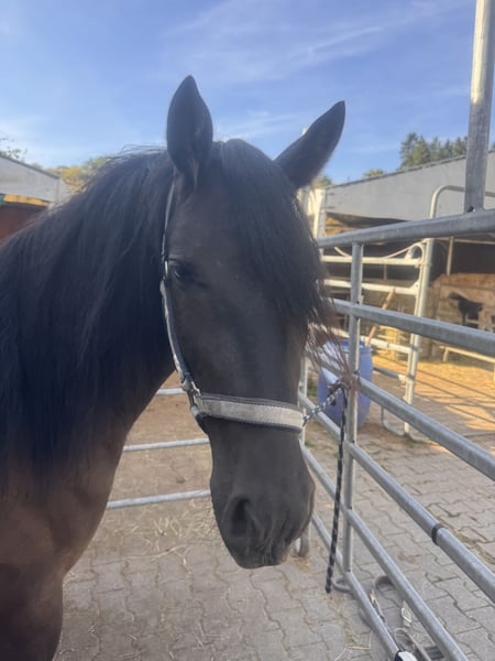 Lleno de Esperanza ist einfach ein Traum von Pony, nicht nur optisch. Er liebt seinen Menschen und würde alles für ihn tun, wenn er vertrauen in ihn hat. Lleno de Esperanza sein Name ist Programm. Er möchte überall dabei sein und folgt einem dabei auf Schritt und Tritt. Er hat einen Charakter aus Gold, zeigt sich in jeder Situation total unerschrocken und brav. Mit weiterer Ausbildung wird er definitiv ein Verlasspferd, das mit seinem Menschen durch Dick und Dünn geht. Lleno de Esperanza ist am 29.04.23 bei mir geboren, sein Vater PRE ist 152 cm und seine Mutter Tinker Cob 135 cm. Er ist aktuell 140 cm groß