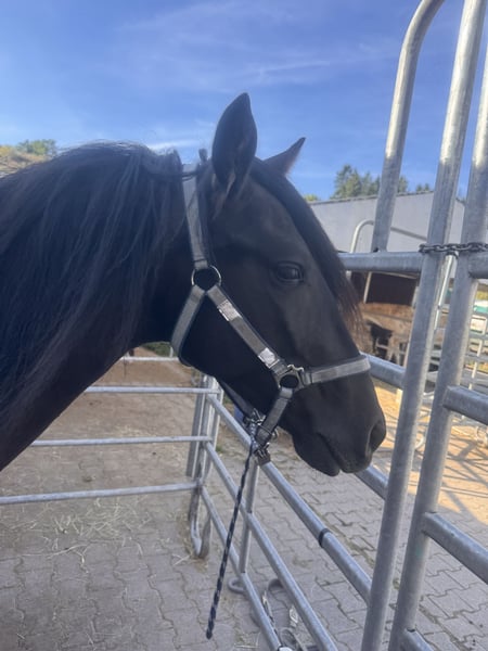 Lleno de Esperanza is simply a dream of a pony, not only in appearance. He loves his person and would do anything for them if he trusts them. Lleno de Esperanza's name is his program. He wants to be involved everywhere and follows you step by step. He has a character of gold, showing total fearlessness and good behavior in every situation. With further training, he will definitely become a reliable horse that will stand by his person through thick and thin. Lleno de Esperanza was born on April 29, 2023, at my place. His father is a PRE standing at 152 cm, and his mother is a Tinker Cob at 135 cm. He is currently 140 cm tall.