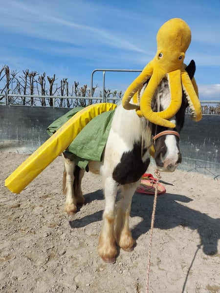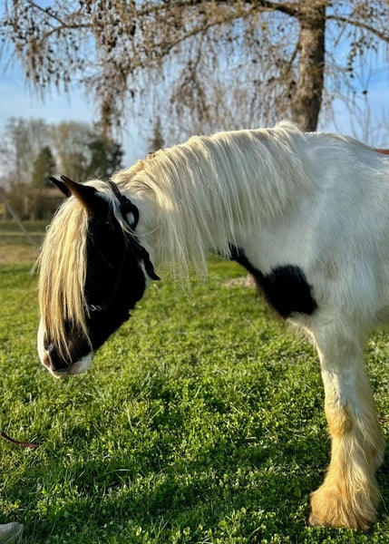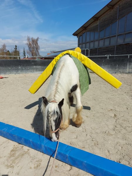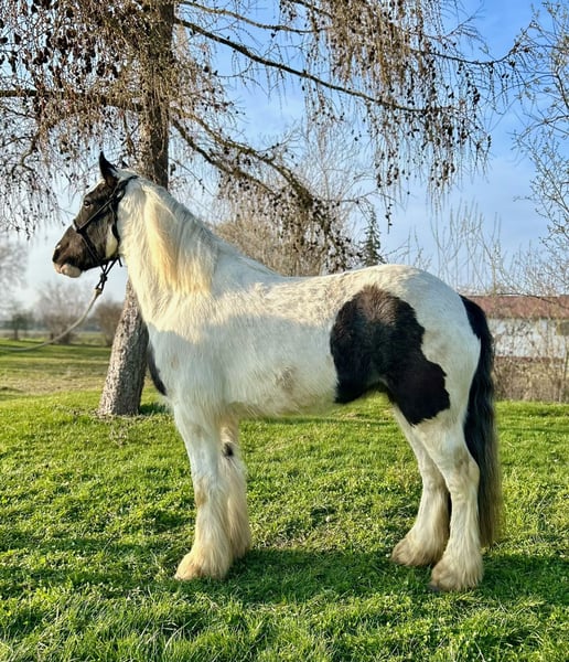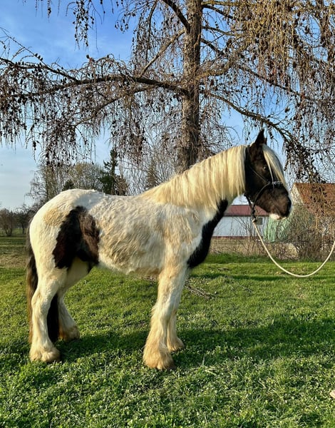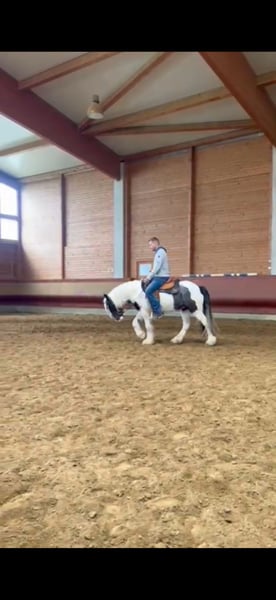 Theo ist ein 3-jähriger Irish Cob, der mit seiner freundlichen Art und seinem klaren Kopf schnell überzeugt. Aktuell hat er ein Stockmaß von ca. 1,45m. Er befindet sich auf einem altersgerechten Ausbildungsstand und geht Schritt, Trab und Galopp bereits brav unter dem Sattel. Longieren lässt er sich ohne Probleme. Dabei zeigt er sich stets kooperativ und angenehm im Handling. Er war schon in kleineren Gruppen im Gelände unterwegs und bleibt auch dort ruhig und gelassen. Besonders schön ist, wie souverän Theo sich im Gelassenheitstraining zeigt. Er meistert neue Eindrücke ruhig und überlegt und bleibt dabei stets ruhig. Im täglichen Umgang ist Theo ein absolut angenehmer Partner, da er dem Menschen sehr zugewandt ist. Er ist schmiede- sowie verladefromm und einfach ehrlich und unkompliziert im Wesen. Natürlich steht Theo altersbedingt noch am Anfang seiner Entwicklung und ist kein "fertiges" Pferd. Gerade das macht ihn aber zu einem tollen Begleiter für jemanden, der Freude daran hat, gemeinsam zu lernen, Vertrauen aufzubauen und seinen Weg mit einem jungen Pferd zu gehen. Ein wirklich lieber Kerl, der bereits jetzt ein verlässlicher Freizeitpartner ist. Bei aufrichtigem Interesse melden Sie sich gerne unter 0160-5482960 gerne auch via WhatsApp. Für einen Besuchstermin mit Vorreiten und Probereiten berechnen wir 40€, die beim Kauf des Pferdes selbstverständlich mit verrechnet werden.