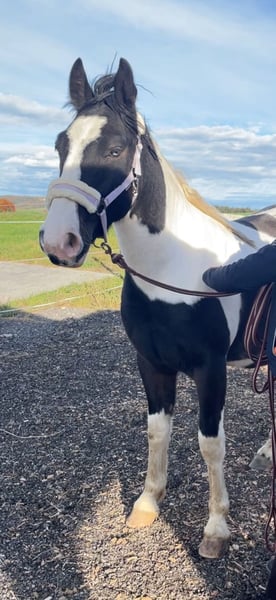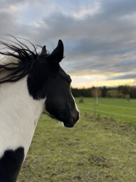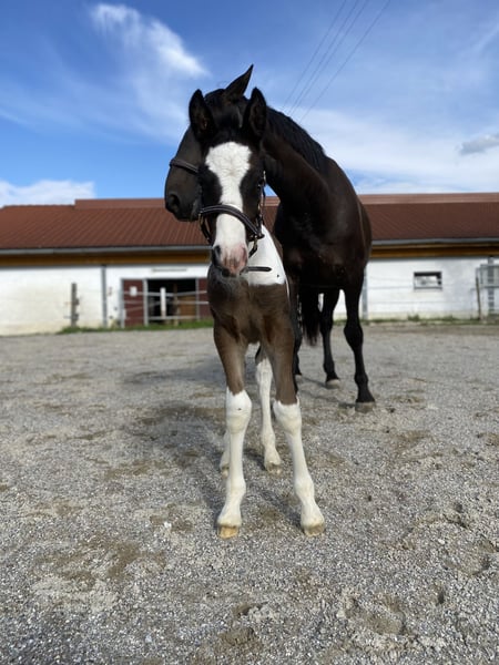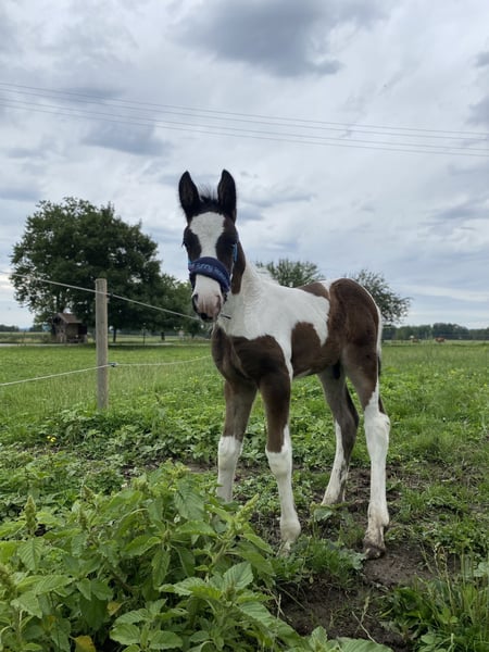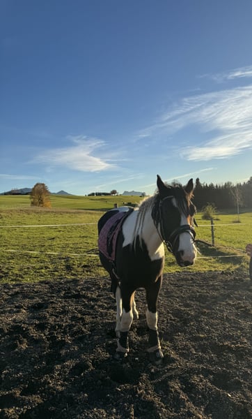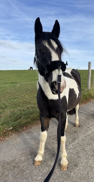 For Sale: Tinker-Lusitano Gelding – Perfect for Leisure Riding! With a heavy heart, we are offering our handsome Tinker-Lusitano gelding, born in 2023, only to a 5-star home. He is a beautiful pinto with a current height of approximately 15.0 hh. His striking coloring and blue eye make him truly stand out. This young gelding is ideally suited for leisure riding and impresses with his friendly nature and pleasant demeanor. He is very brave and uncomplicated, making him a wonderful choice for children as well. He is healthy, well-trained, and eager for a new owner who will lovingly nurture him and enjoy spending leisure time together. He is already well-handled and behaves very calmly. He has experience with saddles, bridles, and other equipment, handling everything confidently. He is farrier-friendly, regularly trimmed, and absolutely loading-friendly. Initial walks outside have also been no issue. If you are interested or would like more information, please feel free to contact me. Only to good hands—no dealers or riding schools. We look forward to your message.