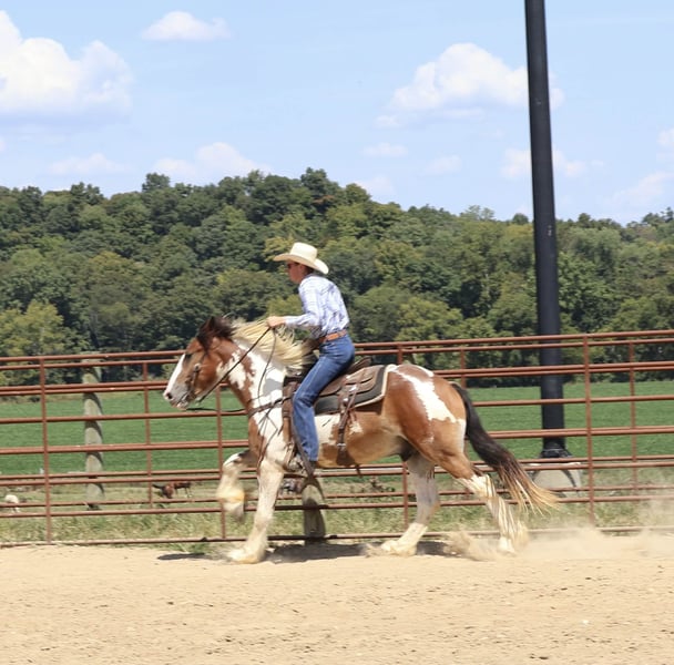 ⚜️ 𝓽𝓱𝓮 𝐇𝐨𝐫𝐬𝐞𝐦𝐚𝐧'𝐬 𝓢𝓱𝓸𝔀𝓬𝓪𝓼𝓮⚜️ Happening now thru MONDAY | DECEMBER 1st - Available EXCLUSIVELY on HorseBid's website! For more details and to register visit: www.Horsebid.com CONSIGNOR CONTACT: Jamie Thomason 270-772-1706 LOCATION: Auburn, KY BREED: Gypsy Drum REGISTERED: No COLOR: Bay Paint HEIGHT: 15.3 AGE: 3 GENDER: Gelding Add a little color to your barn with this one of a kind gelding who brings quiet confidence to every ride! He’s personable and gentle, with that laidback, husband safe attitude everyone wants, but rarely finds. On the trail he’s calm, steady, and sure of himself, whether you’re out for a quick loop or heading off on an overnight camping trip. Safe for guests and dependable enough to help with ranch chores, he’s a trustworthy partner with the feel of an old soul. Clayton is a 3 yr old, bay paint, Gypsy Drum gelding, currently standing 15.3 hands, & he’s ready for his next best friend! Clayton has spent this past summer with us logging miles of trails, working on a cattle operation, and serving as the “go to” When my teenagers organize a weekend camping trip with their non horsey friends. He’s the one we load up every time when we need a steady mount for someone who doesn’t have a horse to ride. Clayton has been trusted to come along on numerous trails across various states. He ties on a line over night, is always quiet, and provides the same safe experience every time. Clayton crosses water, goes up and down inclines, navigates rough terrain & downfall with ease. A more whoa than go style. Clayton is an asset on the farm. We use him to gather cattle alongside working stock dogs, to rope & doctor calves. There’s nothing he isn’t willing to try, a true working partner. Clayton is young, but wise beyond his years. He is gun safe, traffic safe, carries the flag, and is unbothered by the tarp. We’ve rode up on various wildlife including deer & turkey and he just carried on. His daily life includes working alongside ATV/UTV’s, large farm equipment, and other livestock, I’m convinced there’s nothing he hasn’t seen. Whether you’re searching for a safe and steady trail horse, a dependable ranch partner, or simply an enjoyable ride right at home, Clayton is your guy. He’s the kind you can count on every time you swing a leg over. If you would like to meet Clayton or have any other questions prior to adding him to your family, feel free to reach out! PPE’s welcome! We can assist in arranging shipping to anywhere! Contact Jamie @ 270-772-1706 Located in Auburn, KY