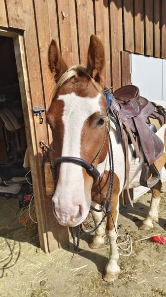 Verkaufe Tinker-Wallach – Perfekt für die Freizeit! Zum Verkauf steht ein liebevoll gepflegter Tinker-Wallach, geboren im Jahr 2022. Dieser hübsche Schecke überzeugt durch sein freundliches Wesen und seine angenehme Größe. Mit einem Stockmaß von ca. 145 cm ist er ideal für den Freizeitbereich geeignet und begeistert durch seine ruhige Art. Der junge Wallach ist gesund und freut sich auf eine neue Familie, die ihn liebevoll fördert und ihm schöne gemeinsame Stunden beschert. Er ist schritt-, trab- und galoppbereit und zeigt sich im Umgang stets freundlich und kooperativ. Gebisslos geritten und ausgebildet von Fearless Horseman Jesse Kent! Bei Interesse oder für weitere Informationen stehe ich gerne zur Verfügung.
