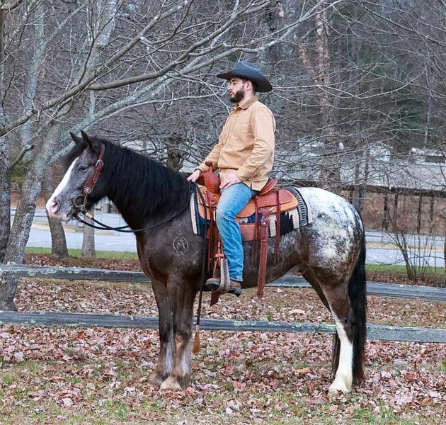 ♦️𝐍𝐄𝐖 𝐘𝐄𝐀𝐑'𝐒 𝑬𝒙𝒕𝒓𝒂𝒗𝒂𝒈𝒂𝒏𝒛𝒂♦️ Happening now thru MONDAY | JANUARY 12th - Available EXCLUSIVELY on HorseBid's website! For more details and to register visit: www.Horsebid.com CONSIGNOR CONTACT: Richman Family Farm 706-897-6721 LOCATION: Blairsville, GA BREED: Gypsy/appaloosa cross REGISTERED: No REGISTERED NAME: Romero’s cool hand luke COLOR: Black-n-white HEIGHT: 14.3 AGE: 4 GENDER: Gelding “Luke” is a stunning 4 year old Gypsy/Appaloosa cross gelding standing at 14.3hh. He sells with Gypsy Horse Association application, already filled out, and ready for you to send in. He has a super sweet in your pocket type demeanor. I bought this horse in early 2025, he’s been my personal horse all year. I have been all over the North Ga mountains, and he is as sure footed as they come. He lopes beautiful circles in the arena, and takes both leads with ease. Side passes and has a comfortable W/T/C. You’ll absolutely love his lope when you’re out enjoying a relaxing trail ride. He’s also been through Mounted Patrol Training and handled that like a pro. Luke is truly one of a kind not only in breed, but in color, looks, attitude, training, affection, and the list goes on and on. I’m going to offer a 7 day guarantee on Luke. He’ll come utd on everything and we can help with delivery too. If you need any info at all, don’t hesitate to call or text…706-897-6721