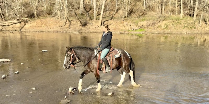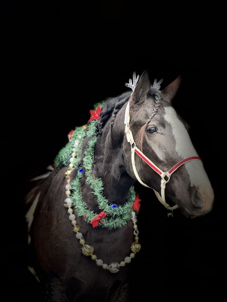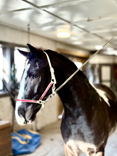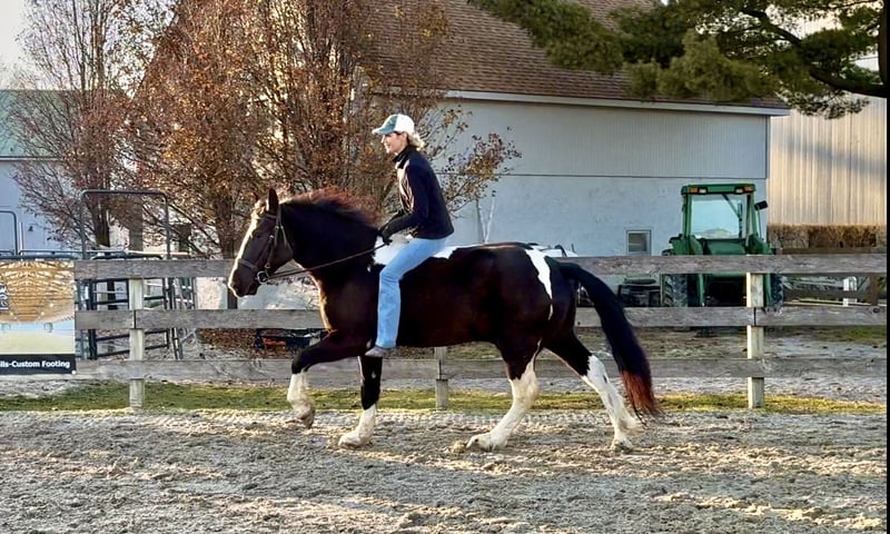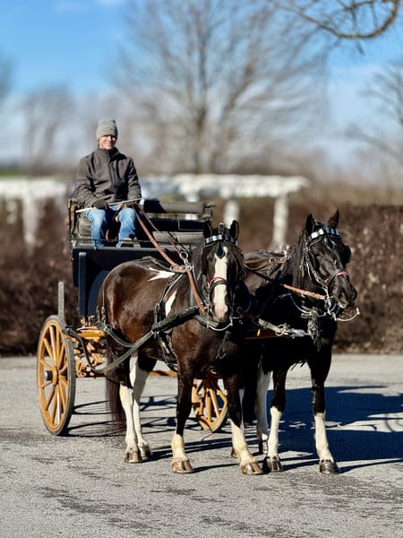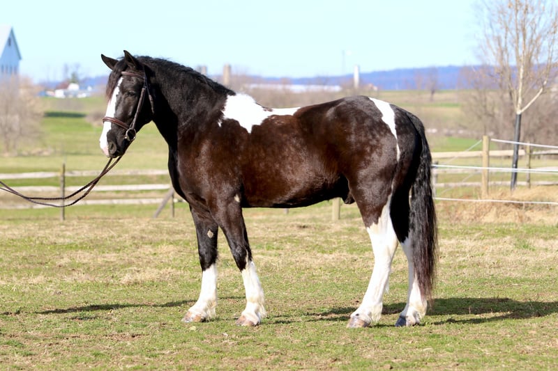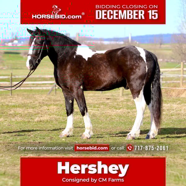 🎄𝐓𝐇𝐄 𝑯𝒐𝒍𝒊𝒅𝒂𝒚 𝐂𝐋𝐀𝐒𝐒𝐈𝐂🎄 Happening now thru MONDAY | DECEMBER 15th - Available EXCLUSIVELY on HorseBid's website! For more details and to register visit: www.Horsebid.com CONSIGNOR CONTACT: CM Farms 717-875-2061 LOCATION: Gap, PA BREED: Gypsy Vanner/Spotted Draft X REGISTERED: No COLOR: B/W Paint HEIGHT: 14.3-15 AGE: 3 GENDER: Gelding Meet ✨Hershey!✨ (Sibling to Candy) — this perfectly put-together boy is a 3-year-old, 14.3–15hh Gypsy Vanner/Spotted Draft X gelding. This pair is some of the nicest-looking 3-year-olds we’ve come across—already so nicely filled out and round! Hershey is broke to ride English, Western, bareback, and drives both single and double! This guy is a blast to ride and such a fun horse to have in the barn.☺️ Under saddle, Hershey takes up leg well, and he tends to be more of a push ride. He’s sensible, smart, willing to learn, and well-behaved! He already walks, trots, and canters both directions. This guy has both leads, easy transitions, and he’s so comfortable it’s like sitting on a couch! He hasn’t been drilled or worked hard at his age; he’s just been getting the basics down. He stands patiently to mount, lunges, walks and trots over poles, and is all-around an easy, simple horse to bring along. He is the definition of a steady Eddy and guaranteed to be the same horse every time you pull him out. This guy has even popped over a couple of cross rails, and he is quite athletic! Hershey truly has some of the cutest movement ever. He’d be a great project for a professional looking for a versatile young horse, or we’d even trust him to be easy enough for an AA or JR rider to continue! This guy is so talented, and we could truly see him thriving in any discipline! He is incredibly sweet and special. It’s impossible not to love this lil chunk! ❤️ On the trail, Hershey has miles under his belt, and he’s quite the trailblazer! He’s brave and will lead the group, or mosey along in the middle or back if that’s where you put him. He’s sure-footed in different terrain and always takes care of his rider. You can ride him out on a loose rein and relax. He’s been through wooded, rocky areas and cantered through the open fields. He’s even ridden to town with semi trucks going by him! He’s completely traffic-safe and sensible. He will cross creeks or go into the river without hesitation. He’s used to encountering bikers, hikers, and dogs, and always keeps his wits about him. He’s been desensitized to the tarp, flag, smoke—and he LOVES to play with the ball. Seriously, it will keep him occupied for hours! 😆 He’ll go through tunnels or over bridges; all you have to do is point and go. We can’t say enough good things about this boy—he’s been so easy and just a pleasure to have in the barn. 🥰 Under harness, Hershey has been driven both single and double. He works well with others and is brave alone, and we couldn’t ask him to be much better at this age! He’s light in the reins, stops with a “whoa,” and has a nice reverse. He has the basics down without being driven into the ground. If someone wanted to continue him in this direction, he’d be such a fun project! He pairs nicely with Candy—and they make the cutest team. Ones that match up as nicely as they do are hard to find, and we’d love to see them end up together! 🙌🏼 In the barn, Hershey is a well-mannered little gentleman. He stands to groom and tack up, and picks up all four feet easily. He’s well-behaved for the vet and farrier and has zero vices in the barn or turnout. He’s a lovebug and will greet you in the pasture begging for pets and attention. Hershey gets along with everyone and still has a cute playful personality. He will try to convince the older horses to play but is smart enough to get the hint if they aren’t into it. He loves to be groomed, get scratches, be braided, and he stands to bathe. We’ve loved having him and his sister in our barn and can’t wait to see what their future holds! If you’re looking for a super sensible, honest-as-they-come, talented, and lovable young horse—don’t miss out on this sweet boy! ⭐️ UTD on shots, coggins, dentist, deworming, and farrier.