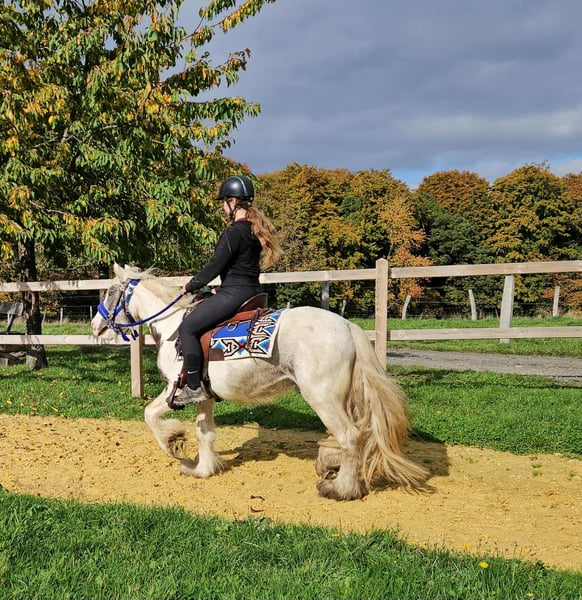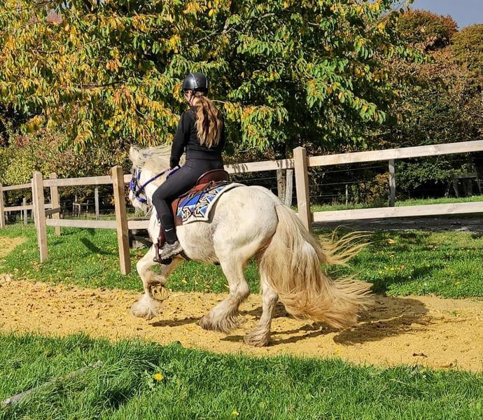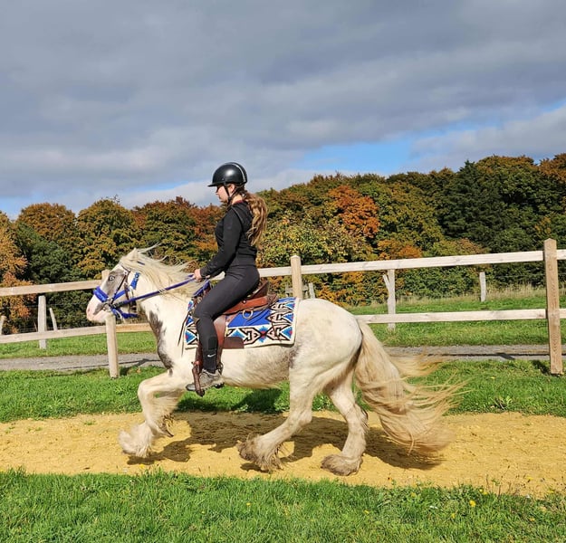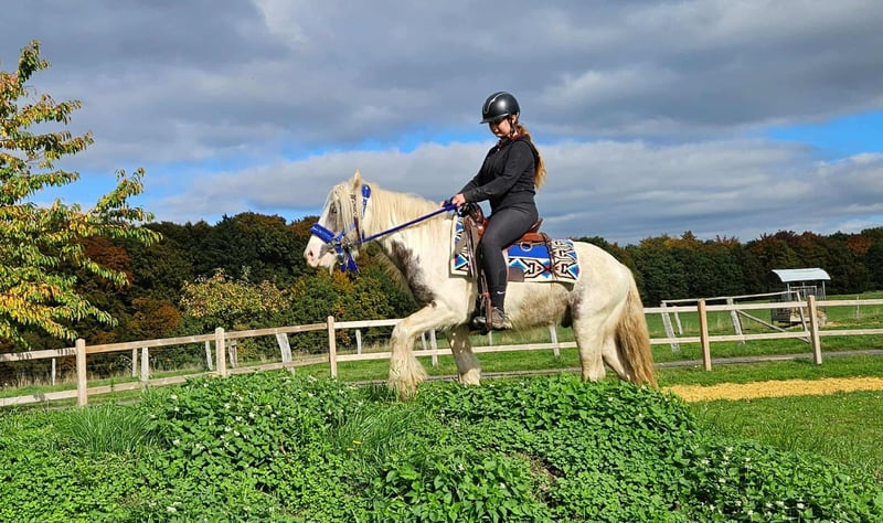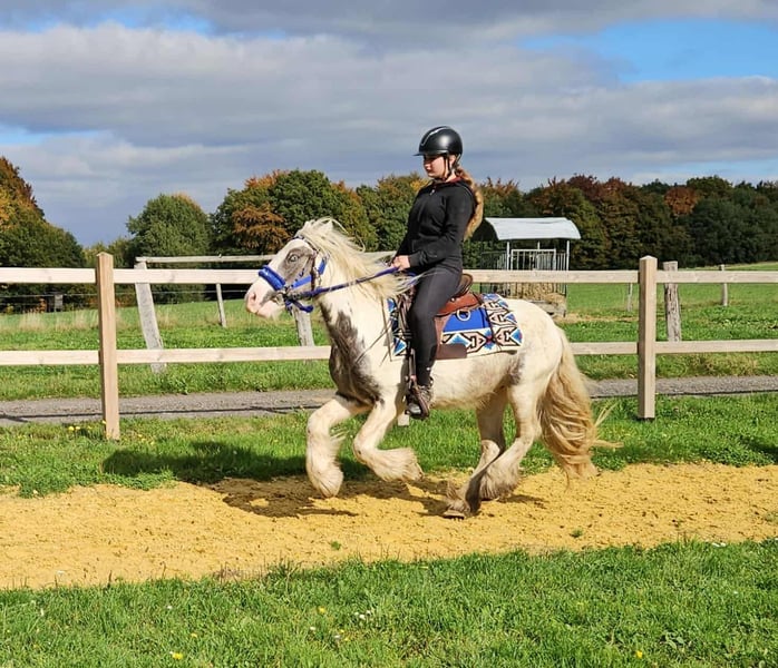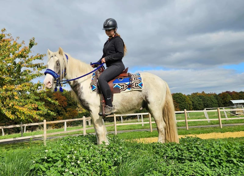 Leisure Tinker Gelding BILLY for Recreational and Trail Riding* *Age:* 4.5 years, ridden *Height:* approx. 14.3 hh *Documentation:* E-pass, microchip, and health certificate available *Price:* €4,900 *Ridden and driven* A very handsome gelding, ideally suited for trail and recreational riding. He is a versatile leisure horse, perfect for both English and Western riding. He has a wonderful, balanced temperament, feels comfortable in a herd but is also well-behaved in a stable. ### *What makes him special:* - Accustomed to herd and paddock turnout, stable confinement is no problem - Ideal for leisure and trail riders - Very even-tempered and easy to handle *Interested?* Please call us at *0171-4001968* (daily from 8 a.m. to 8 p.m.). *No emails or WhatsApp messages, only phone calls!* *Additional information:* - Accessories and transportation can be organized at favorable rates - Our farm shop offers a small selection of used Western saddles - *Installment payments are not available* *Customer service:* - Each customer receives a *three-month exchange guarantee.* - A trial ride at our facility is possible so you can get to know your dream horse. For €35, you can ride, have him lunged, go for a walk, or more. Upon request, you can also test a second horse for €25. This amount will be credited towards the purchase if you buy a horse on the same day. *Special features:* - Immediate pickup with horse trailer grants you a *€100 discount.* - We conduct a transparent trial ride to ensure the horse is the right fit for you.
