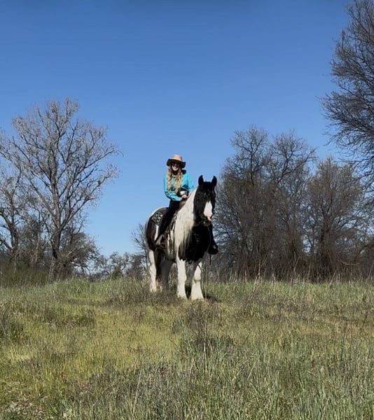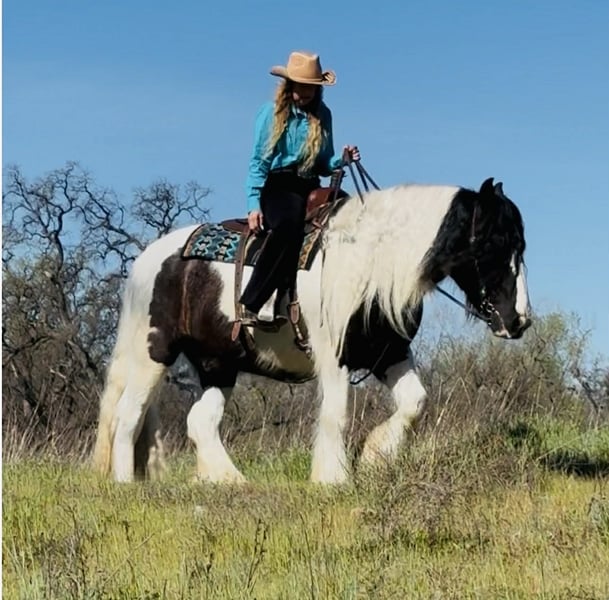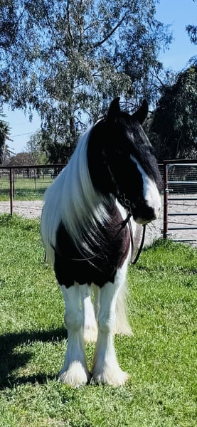 🌟𝑨𝒑𝒓𝒊𝒍 𝐀𝐋𝐋 𝐒𝐓𝐀𝐑 𝐋𝐈𝐍𝐄𝐔𝐏🌟 Happening now thru MONDAY | APRIL 6th - Available EXCLUSIVELY on HorseBid's website! For more details and to register visit: www.Horsebid.com CONSIGNOR CONTACT: Up Schmitt Creek Horses 530-519-9315 LOCATION: Gerber, CA BREED: Gypsy Vanner REGISTERED: No COLOR: Blue Roan and White HEIGHT: 15.1 AGE: 5 GENDER: Gelding THE WHOLE FAMILY CAN ENJOY HIM! He is big, stout and strong, he’s a versatile partner — whether in the show ring, enjoying dressage and western equitation, or simply being someone’s beloved daily riding horse and trail companion. He is NOT spooky, point him he will go down the road by cars, train track, city trails, or go push in the cattle, been in the branding pen. has roped a few and drag them to the fire. he has been started carting, and over little jumps. He has such amazing mind and so welling. Straight legs, solid feet, excellent proportions, exceptionally heavy mane, tail, and feather. He has the best personality, he will met you at the gate, loves attention, saddle up and step on he has absolutely zero bad habits. NO BUCK. rides bareback take him swimming he loves the water. rides out by himself or with a group he is suitable for any level of rider. watch his video and you will see why we all LOVE him. UTD on everything. I will credit $1000 towards hauling and keep him for 5days for free and $10 a day after