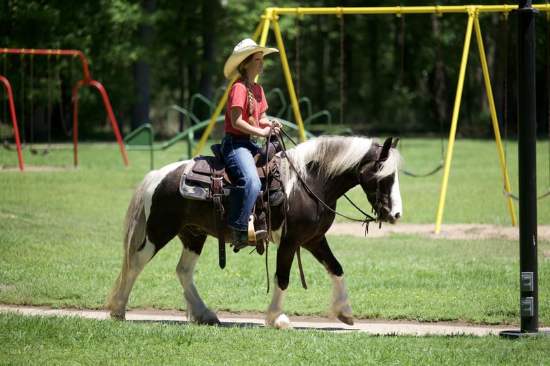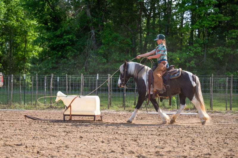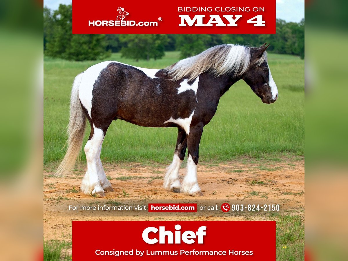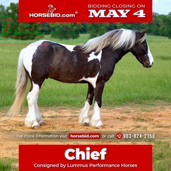 ▪️▫️◾️𝐭𝐡𝐞 𝑴𝒂𝒚 𝐒𝐞𝐥𝐞𝐜𝐭◾️▫️▪️ Happening now thru MONDAY | MAY 4th - Available EXCLUSIVELY on HorseBid's website! For more details and to register visit: www.Horsebid.com CONSIGNOR CONTACT: Lummus Performance Horses 903-824-2150 LOCATION: Bloomburg, TX BREED: Gypsy Vanner Cross REGISTERED: No COLOR: Paint HEIGHT: 12.2 AGE: 5 GENDER: Gelding Where do I even begin with a pony this GREAT! If you want a pony that rides like a big horse and will go anywhere and do anything your kid asks, this is the one for you! Chief is a 5 yr old Half Gypsy Vanner paint pony that stands 12.2 hands tall and THICK!!! He is one of those you never have to worry about when your kid wants to go ride, he is a true kids pony DELUXE. Whether you’re in the arena or out on the trail, Chief is the go to for all ages, he is such an easy going, calm minded guy. He will side pass, opens and closes gates, Walk/Trot/Lope easy circles, catches both leads and has a great stop! He rides Western or English, he would be a great short stirrup mount as he will even ease over small jumps fluently. He is truly the kind you don’t see offered for sale, he’s a part of our family and one of the favorites in the barn for all the visitors. Chief is easy easy to be around, he leads, loads, stands tied quietly, bathes, and saddles/bridles with ease. My girls (7 & 10) catch and saddle him while riding their Segways, he couldn’t care less! Chief is a been there done that type pony with a lot of experience under his belt. He is 110% safe with absolutely NO kick or bite and has ZERO buck or freshness even if you leave him stalled for weeks at a time. He has been hauled extensively to town, trail rides, working cows, and ropings (ropes swinging and loud speaker systems don’t bother him a bit!) He is comfortable with tarps, flags, traffic, dogs, and busy town settings, including sidewalks and crowds. He hauls well and eats/drinks in new places. I haven’t found anything that bothers him. He loves to explore and is always very confident! Chief has a great disposition, he loves people and is always one of the first to meet you in the pasture. Chief has excellent ground manners, making him safe for the littles to groom. Chief is very reliable on the trail, he takes care of his rider, even on steep creek banks/crossings, rough country, and will not jump the water, he always takes care of his rider. He will calmly ease into and out of water without hesitation. He rides well alone or in a group and is comfortable leading or following on a loose rein. Chief is also great inside the arena. He has been started on barrels, poles, goat tying, and breakaway. He has also been used for lead-line for the little ones! I can’t say enough good things about him! He requires no special maintenance and is easy to keep. He is up to date on farrier, deworming, and vaccinations. Chief is 100% sound and stays barefoot. Don’t miss out on a special pony like this one!