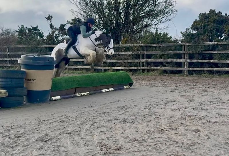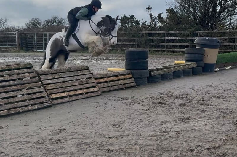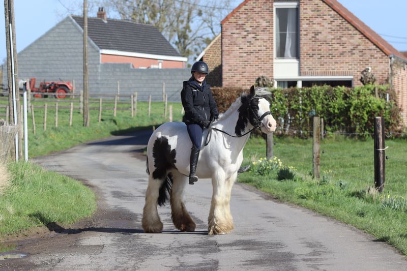 Kompakter Tinker-Pony – auch für Erwachsene geeignet 6-jähriger Wallach – ca. 1,44 m Name: Biscuit 🍪 Dieser wunderschöne Tinker verfügt über zwei auffällige blaue Mondäuglein und eine korrekte, breite Konstitution mit eleganten Beinen, wie es für einen echten Tinker typisch ist. Im Umgang ist er ein absoluter Traum: sehr brav, ruhig und steht beim Putzen und Aufsatteln stets ordentlich still. Unter dem Sattel ist Biscuit ein echtes Vorzeigepony. Er kennt die drei Grundgangarten perfekt, wechselt mühelos von Trab zu Galopp und läuft schön und leichtfüßig nachgiebig. Biscuit liebt das Springen. Sowohl Geländehindernisse als auch normale Sprünge nimmt er mit Leichtigkeit und Freude. Auch bei Ausritten ist er äußerst zuverlässig: überhaupt nicht schreckhaft und sogar ohne Sattel kannst du mit ihm nach draußen gehen. Kurz gesagt: Ein wunderschöner Tinker mit großartigem Charakter, angenehmer Einstellung und in allem, was er tut, äußerst brav. Weitere Infos: 0032 475 68 22 43 Für Videos: Anfrage auf unserer Webseite.