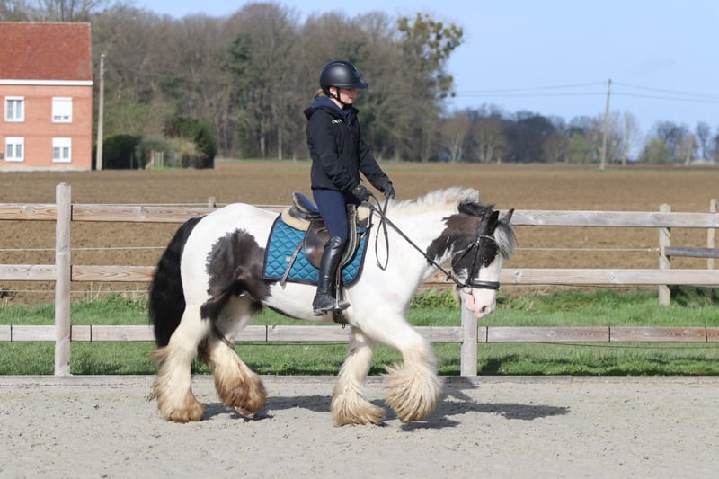Sehr kompakter Tinker-Pony – auch für Erwachsene geeignet 6-jähriger Rüde – ca. 1,44 m Name: Biscuit 🍪 Dieser wunderschöne Tinker hat zwei auffällige blaue Mondaugen und eine korrekte, breite Konstitution mit eleganten Beinen, wie es für einen echten Tinker typisch ist. Im Umgang ist er ein absoluter Traum: äußerst brav, ruhig und steht beim Pflegen und Satteln stets ruhig. Unter dem Sattel ist Biscuit ein echtes Vorzeigepony. Er kennt die drei Grundgangarten perfekt, wechselt mühelos von Trab zu Galopp und läuft schön und gelassen auf Zügelkontakt. Biscuit liebt außerdem das Springen. Sowohl Geländehindernisse als auch einfache Sprünge nimmt er mit Leichtigkeit und Freude. Auch bei Ausritten ist er äußerst zuverlässig: überhaupt nicht schreckhaft und sogar ohne Sattel kannst du mit ihm nach draußen gehen. Kurz gesagt: Ein wunderschöner Tinker mit Top-Charakter, angenehmer Einstellung und in allem, was er tut, äußerst brav. Weitere Infos: 0032 475 68 22 43 Für Videos: Anfrage auf unserer Webseite.