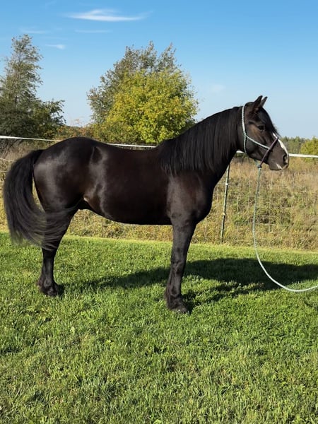 ⚜️ Das Horseman’s Showcase ⚜️ Findet jetzt bis MONTAG, 1. Dezember, exklusiv auf der Website von HorseBid statt! Für weitere Informationen und zur Anmeldung besuchen Sie bitte: www.Horsebid.com VERKÄUFER-KONTAKT: AJ Acres 920-251-5127 STANDORT: Pickett, Wisconsin RASSE: Gypsy Cross EINGETRAGEN: Nein Name: AJA Black Shadowy Knight FARBE: Braun Höhe: 14,1 hh Alter: 5 Jahre Geschlecht: Wallach Shadow reitet und zieht; er ist ein Pferd, das in jeder Aufgabe, die man ihm stellt, glänzt und stets bemüht ist, seinem Reiter zu gefallen. Er wird liebevoll von jungen und erwachsenen Reitern geschätzt und genießt die Aufmerksamkeit aller Menschen. Shadow überzeugt im Showring mit seinem auffälligen Bewegungsbild. Er wurde erfolgreich von Jugendlichen und Erwachsenen in verschiedenen Disziplinen vorgestellt: in der Hand, Western, Englisch, Saddleseat, über Crossrails und bei Speed-Events – und konnte in jeder Disziplin Platzierungen erzielen! Doch nicht nur im Showring zeigt er sein Können: Shadow besitzt einen gesunden, ausgeglichenen Geist und ist zuverlässig auf Trails unterwegs. Er wurde bereits in zahlreiche State Parks gebracht, hat viele Trailmeilen hinter sich, durchquert Wasser und Brücken, folgt oder führt. Er ist an Hunde gewöhnt, die beim Training herumtollen, und lässt sich vom Straßenverkehr nicht aus der Ruhe bringen. Er wurde für Wochenendshows im Stall untergebracht und steht ruhig für Baden, Banden, Pflege. Er hat an unserer örtlichen 4. Juli-Parade teilgenommen und genoss die Aufmerksamkeit sehr! Er holt Sie am Anspannblock ab, begrüßt Sie am Tor und freut sich, den Tag zu arbeiten. Shadow kennt Stimmkommandos (für das Fahren) und reagiert aufmerksam auf Bein-, Hand- und Sitzsignale unter dem Sattel. Er hat schöne Gänge, kennt seine Führungen, macht elegante Pivots und hält gut an. Er würde im Dressurreiten glänzen, ist aber offen für jede Richtung, die sein nächster Partner einschlägt, und wird sein Bestes geben, um erfolgreich zu sein. Shadow ist wirklich ein besonderes Pferd, das jemandem einen großartigen Partner sein wird. Es wird uns schwerfallen, ihn gehen zu lassen! Er ist anbindbar, verladen, transportfähig, badbar, schneidbar usw. – alle Pflege- und Gesundheitschecks sind aktuell (Chiro, Wurmkur, Zähne, Hufe, Impfungen). Für die Showzeit trägt er vorne Hufeisen. Er hat ein aktuelles Gesundheitszeugnis/PPE. Standort: Pickett, WI. Transport möglich.
