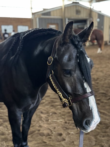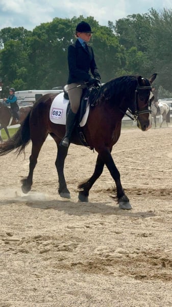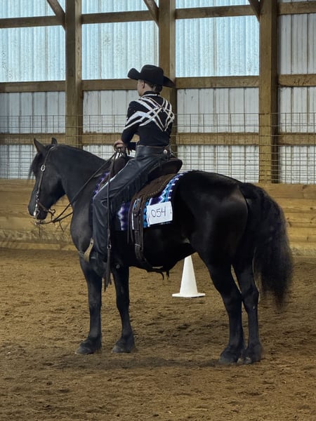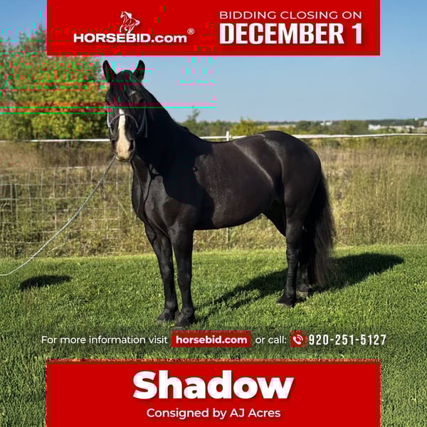 ⚜️ 𝓽𝓱𝓮 𝐇𝐨𝐫𝐬𝐞𝐦𝐚𝐧'𝐬 𝓢𝓱𝓸𝔀𝓬𝓪𝓼𝓮⚜️ Happening now thru MONDAY | DECEMBER 1st - Available EXCLUSIVELY on HorseBid's website! For more details and to register visit: www.Horsebid.com CONSIGNOR CONTACT: AJ Acres 920-251-5127 LOCATION: Pickett, WI BREED: Gypsy Cross REGISTERED: No REGISTERED NAME: AJA Black Shadowy Knight COLOR: Bay HEIGHT: 14.1 AGE: 5 GENDER: Gelding Shadow rides and drives; he is a horse that excels at whichever task you give him and aims to please. He is lovingly adored by his youth and adult riders, and enjoys attention from all humans. Shadow dominates in the show ring with his eye-catching movement. He has been successfully shown by youth and adults in hand, western, English, saddleseat, over cross rails, and speed events - placing competitively in each discipline! Not only does he prove himself with his show performance, Shadow has the sound and sane mind to take you safely down the trails. He has been hauled all over to multiple state parks, racked on tons of trail miles, crosses water and bridges, follows or leads. He’s used to dogs running around him during schooling and is not bothered by traffic. He has been stalled for weekend shows and stands well for bathing/banding/grooming. He has been ridden in our local 4th of July parade and loved all the attention! He’ll pick you up at the mounting block, greet you at the gate, and be happy to clock in to work for the day. Shadow knows voice commands (driving) and is attentive to leg, hand, and seat commands under saddle. He has beautiful gaits, knows his leads, pivots nicely, and has a great stop. He would excel in dressage, but could go any direction his next partner wants to go and will put forth the effort to do it successfully. Shadow truly is a special horse who will make someone a fantastic partner. We’re going to be sad to see this one go! Ties, loads, hauls, bathes, clips, etc. UTD all cares (chiro, worm, teeth, feet, vacc). Front shoes for show season. Will have current health certificate/PPE. Located Pickett, Wi. Hauling available.