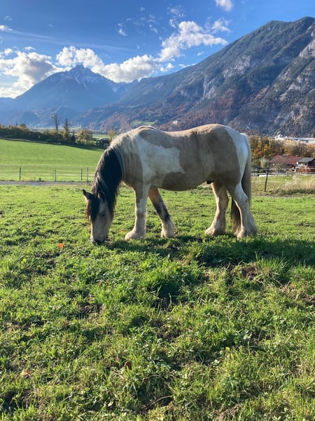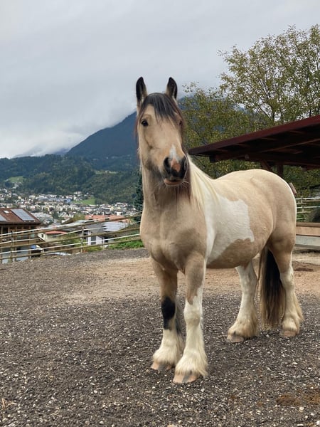 Mein wunderschöner Tinkerwallach Sipatù, ein echtes Indianerpony, sucht ein liebevolles, neues Zuhause, in dem er weiter gefördert und ausgebildet wird. Sipatù sucht seinen Lebensmenschen, vielleicht suchst Du ja dein Lebenspferd? Ich wünsche mir für Sipatù einen Menschen, der mit Ruhe, Herz und Geduld an seiner Seite ist. Du solltest klar und fair mit ihm kommunizieren und ihm Sicherheit geben. Darüberhinaus solltest du bereit sein, ihn ihm Herdenverband in einem Offenstall mit 24/7 Heu zu halten. Sipatù wird im April 6 Jahre alt. Er geht brav in den Hänger, ist brav beim Hufschmied und kennt Spazierengehen und Bodenarbeit (Doppellonge, Longieren). Er hat schon einen Fellsattel getragen und wir sind ein paar Mal auf ihm draufgesessen. Jetzt ist er bereit, schonend angeritten zu werden. Aus Zeitmangel haben wir allerdings seit Oktober 2025, nachdem er von der Alm zurückgekommen ist, nicht mehr mit ihm trainiert. Aufgrund dieses Zeitmangels habe ich mich nun schweren Herzens entschlossen, Sipatù zu verkaufen. Die letzten 4 Sommer durfte Sipatù auf der Alm verbringen. Er ist herdenverträglich, sucht aktiv Kontakt mit anderen Pferden, ist neugierig und dem Menschen zugewandt. Allerdings ist er, seinem Alter entsprechend, gerade in der Pubertät und daher hin und wieder noch ein bisschen rüpelhaft. Sipatù hat ein gesundes Naturell, geht barhuf, ist auch im Winter immer ohne Decke draußen. Seine Zähne sind gemacht, er wurde regelmäßig geimpft und entwurmt. Sipatù ist ein ganz besonderer Kerl und schleicht sich schnell in jedes Herz. Ich wünsche mir für ihn einen Menschen, der ihn sieht, ihn weiter fördert und ihm einen Lebensplatz geben kann.