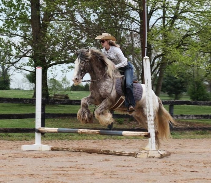 Wysłany do Cowgirl Cadillacs w Sheridan, WY. Sprzedaż 14-15 czerwca. Można licytować online, telefonicznie lub osobiście! Czy czekałeś na rycerza w lśniącej zbroi, który Cię porwie? DANTE STEEL KNIGHT jest tym, na co czekałeś! Z wyjątkowym umaszczeniem roan/appaloosa, puszystymi, pierzastymi nogami, puszystą grzywą i ogonem, kochającą osobowością i złotym sercem, nawet średniowiecze nie miało takiego rycerza!!! Przez ostatni rok Dante skradł serca naszych małych dziewczynek! Jest Panem Osobowością i Panem Cierpliwym! Uwielbia uwagę i pielęgnację oraz wszystko, co wiąże się z interakcją z ludźmi! Dante to dobrze zbudowany, 5-letni wałach o umaszczeniu Appaloosa, zarejestrowany jako Gypsy Vanner! Ma płynny jogging, bardzo ładny lope, kręci się w kółko w obie strony, przechodzi na boki i cofa się z łatwością! Dante zna jedną lub dwie sztuczki, gdy kładzie się do wsiadania i zsiadania. Nic dziwnego, że ludzie kochają cygany; ich popularność wynika z ich wszechstronności i spokojnej natury! Dante jest prawdziwym ambasadorem rasy. Dante może wyjść i z łatwością pokonywać szlaki. Przejdzie przez głęboką wodę, nierówne skaliste tereny, pokona strome zbocza i wybierze drogę przez martwe zbocza, a wszystko to przy zachowaniu bezpieczeństwa jeźdźca! Był używany na ranczu do sprawdzania bydła, sortowania par, a także do powożenia cieląt. Jeździliśmy z nim po autostradach, przez miasto i jest bezpieczny w każdym ruchu ulicznym. Widział jasne światła i słyszał głośne głośniki, ponieważ mieliśmy Dantego w przedstawieniu bożonarodzeniowym zatytułowanym "Podróż przez Betlejem", w którym brało udział około 250 aktorów. Dante był dosiadany jak koń rzymskiego żołnierza, przez kilka godzin, gdy szedł w górę / w dół rzędów samochodów pełnych ludzi. Oczywiście ludzie robili zdjęcia i wyciągali ręce przez okna, aby go pogłaskać. W ciągu 2 nocy przez "żywą szopkę" przejechało około 8000 samochodów. Przetestowaliśmy Dantego w każdy znany nam sposób, a on zdał każdy pojedynczy test z wynikiem doskonałym! Pokazał nam, że każdy wiek i każdy poziom umiejętności może się nim cieszyć. Jeśli czekałeś na przybycie swojego rycerza w lśniącej zbroi... ON JUŻ JEST!!! Zadzwoń pod numer 606-308-2461, aby uzyskać więcej informacji.