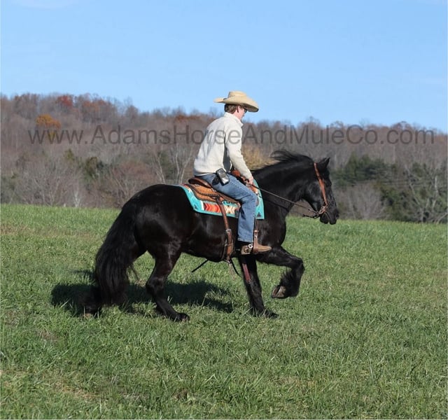 Go to visit our website for more pics and a video. AHAMC has been in the horse business and sold horses over the internet since 2005. We have a long track record of success with hundreds of happy customers. We work hard to match riders with the correct horses and specialize in beginner safe, family friendly horses that have been used and checked out by our family! Max is a 15hh, 6 yr old, JET Black registered Gypsy Horse. He is a half Gypsy Vanner and a half Friesian… you get he best of both worlds with this guy, the looks, beautiful black coloring, lots of mane and tail with some feathering… Max is a well built gelding with lots of muscle! He has been ridden on a small cattle operation and although he hasn’t been a big time hardworking ranch horse he has toted the kids around the operation! Max has been camping and trail ridden in several states across the west and east as well. He will cross creeks, ditches, logs and navigate rough rocky areas. He is safe in traffic whether that be trucks or cars. He is safe for any beginner to ride and is sure to help build your confience levels. He will go up or down even the steepest slopes, across deep creeks, over downed trees, and over all types of rough terrain while still being sure footed. Max is not cinchy, cold backed, does not crib or weave. He has the looks, the right mind set and the expierience… Max is the horse of a lifetime! Feel free to call Eric 606-308-2461 any questions.