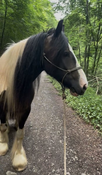Ferry zoekt een nieuwe plek waar hij zich thuis kan voelen Hij is 8 jaar oud, ongeveer 1,55 m groot, een prachtige zwart-wit-bruin gevlekte Tinker met een uitstekende afstamming en een grote persoonlijkheid. Nu gaat hij op zoek naar een nieuwe familie waar hij echt kan aankomen. Ferry kent de klassieke dubbele longe, de traditionele handwerktraining, de grondwerktraining en het longeerwerk met rijden. Ook het rijden met de longe is hem bekend. Hij heeft ook rusttraining gehad, die hij betrouwbaar heeft doorstaan. In het terrein is Ferry regelmatig onderweg, zowel alleen als met andere paarden. Ook in het verkeer waren we met hem onderweg, en dat doet hij geweldig: of het nu auto's, fietsen, tractoren zijn, van voren of van achteren, Ferry blijft kalm en braaf. Onder het zadel wordt hij momenteel verder opgeleid. Hij loopt stap, draf en galop en laat al mooie beginstukken zien van schouderbinnen, travers en binnen- en buitenwaarts rijden. Zoals het hoort bij een stevige Tinker en pony, kan Ferry soms ook eigenwijs zijn. Daarom zoeken wij voor hem een even eigenwijze, duidelijke persoon die weet wat ze wil en hem liefdevol, maar consequent de structuur biedt die hij nodig heeft om de trouwe en lieve partner te worden die je als paardenmens wenst. Zijn wereld is duidelijk het terrein, dat vindt hij het allerleukst. Buiten is Ferry een kleine motocross-offroad-machine die gewoon plezier brengt: overal overheen, overal doorheen, zolang en zover de hoeven het toelaten. Dat is zijn motto. Natuurlijk is Ferry smid- en trailerproef, hij is gezond geregistreerd, sociaal betrouwbaar en gewend aan kinderen en honden. Ferry is een echte vriend, een buitenpaard, een type met hart en karakter. We zoeken voor hem een familie die hem accepteert zoals hij is en ervaring heeft met paarden.