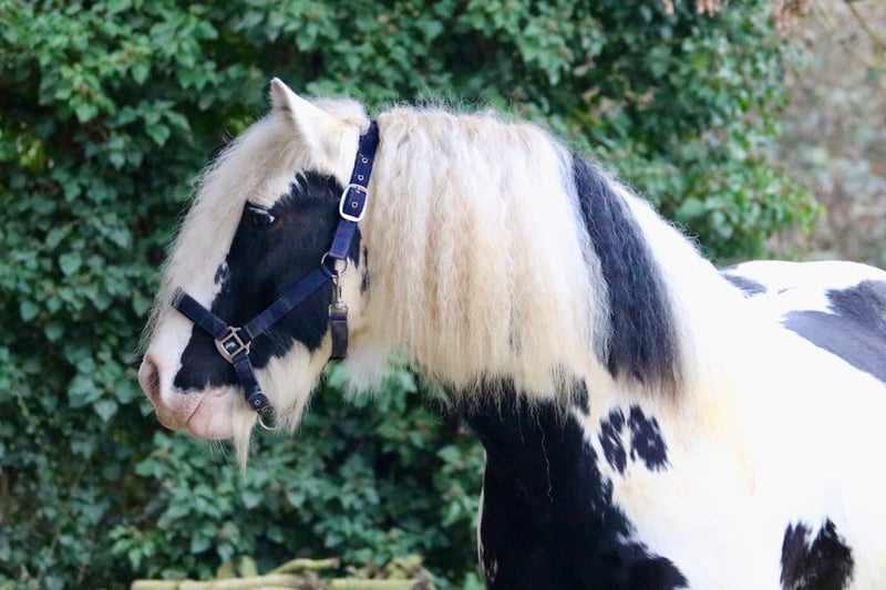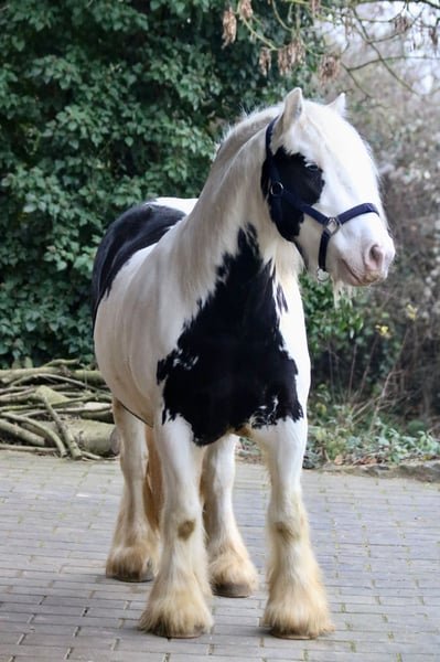 Splash, the sweetest temptation since ponies were invented. Or simply: practical, reliable, and charming. Splash is an 8-year-old, proud 14.0 hh gelding of a strikingly beautiful Gypsy Vanner breed, featuring an unusually elegant coat color, excellent conformation, and straight legs. He has been gently backed and is now in basic training. He is extremely calm, relaxed, and remains unfazed by almost anything. Whether it’s umbrellas, tarps, trumpets, or other objects, nothing startles this little fellow. Splash is already familiar with groundwork, leading, classical riding, classical double longeing, driving double longeing, and road safety training. He consistently shows attentiveness and good manners. He is also accustomed to dogs and cats. His training level is more than appropriate for a young horse of his age. He loves trail riding, whether alone or in company, and always strives to please his rider in the terrain. The boy is well-mannered and impresses with his lovable, loyal, and dependable character. Splash is completely social and used to herd life and open stable management. Naturally, he is farrier- and loading-friendly, and his health records are meticulously maintained. Thanks to his balanced temperament and composure, I can also see Splash excelling in therapeutic riding with further training. He is only available to responsible, caring owners with sufficient experience in handling young horses.