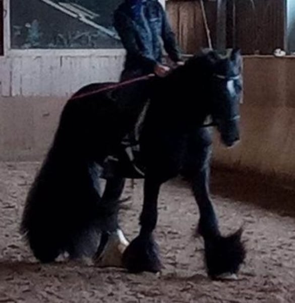 Hugin to 8-letni, chętny do pracy i o silnym charakterze wałach Tinker. Został osiodłany dopiero w wieku 5 lat, aby dać mu czas na wzrost. Jego żywe tempo podstawowe i energiczne ruchy sprawiają, że jazda na nim to przyjemność, jednak czyni go to nieodpowiednim dla dzieci i początkujących. Hugin szybko się uczy i pragnie być rozwijany. W terenie nic go szybko nie wytrąca z równowagi, a w codziennym kontakcie panuje relaksująca atmosfera. U Hugin zdiagnozowano lekką formę CPL, która przy odpowiedniej uwadze podczas karmienia i pielęgnacji nie wpływa na jego kondycję. Szukamy dla niego miejsca u osoby z sercem i zrozumieniem dla koni, jego akcesoria mogą być częściowo nabyte razem z nim. Aby zapobiec turystyce jeździeckiej, pobieramy opłatę w wysokości 30 € za próbę jazdy, która oczywiście zostanie odliczona od ceny zakupu. W przypadku poważnego zainteresowania prosimy o kontakt wyłącznie telefoniczny, a nie przez wiadomości WhatsApp. +49 (0)15125174420