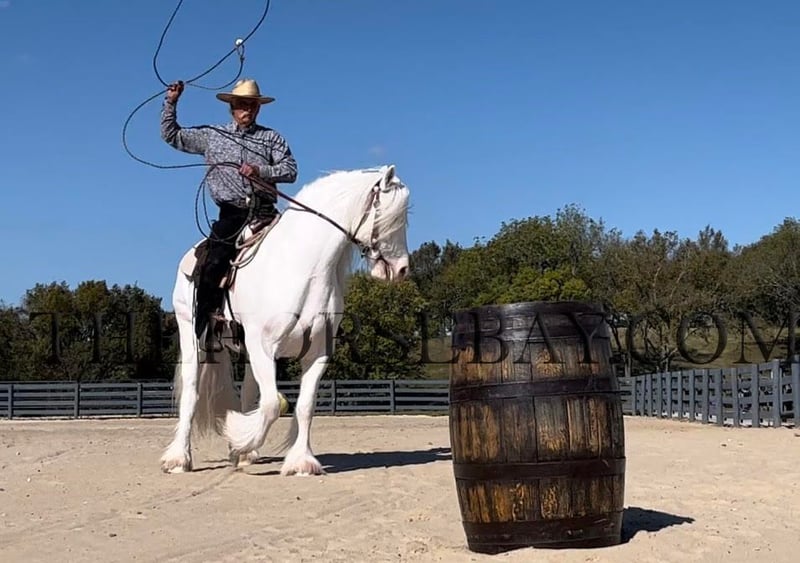OFFERTA APERTA SU THEHORSEBAY,COM. LA VENDITA TERMINA IL 03/05 ALLE 17:30 CT. Ulteriori informazioni sono disponibili sul sito web, tra cui un'ispezione veterinaria UTD, Coggins, video, immagini e le informazioni di contatto del proprietario per porre domande, richiedere informazioni o prendere accordi per una visita. Vi presentiamo Congress Hill Ooh LaLa, l'accattivante cavalla Gypsy Vanner che unisce senza sforzo coraggio, magnificenza e un cuore d'oro puro. LaLa non è solo un cavallo; è un capolavoro squisito, che emana sicurezza e calore. Lavorare con lei è un piacere assoluto, perché affronta ogni sfida con grazia e dedizione. LaLa non è solo una compagna, ma un partner devoto, il che la rende ideale per chi cerca un legame straordinario pieno di amore e lealtà. Il suo desiderio di piacere non conosce limiti, rendendola una presenza versatile e incantevole in qualsiasi direzione decidiate di esplorare insieme. Immersa in un mondo di socializzazione, LaLa è stata esposta a un'ampia gamma di discipline, padroneggiando l'arte dell'equitazione inglese e occidentale, della guida, della libertà e persino delle performance teatrali. La sua capacità di adattamento e la sua volontà di eccellere in vari ambiti la rendono un'eccellenza tra i suoi coetanei. Mentre intraprendiamo un nuovo viaggio con un programma di allevamento per un'altra razza illustre, salutiamo a malincuore la nostra amata LaLa, dandole l'opportunità di portare gioia e felicità senza pari in una nuova casa. Non perdete l'occasione di accogliere nella vostra vita questa maestosa cavalla Gypsy Vanner: è un gioiello radioso pronto ad abbellire le vostre giornate con bellezza, amore e infiniti momenti di incanto. Agite in fretta, perché facciamo spazio ai nostri promettenti Marchadors, e lasciate che LaLa diventi la gemma splendente della vostra storia equestre.