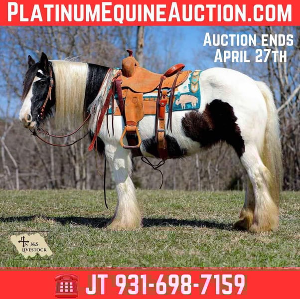 ONLINE AUCTION Place your bids at www.PlatinumEquineAuction.com Starting Bid $3500 Auction ends April 27th, 2025 Need a new saddle? Check out White Rock Saddles on our website or Facebook! Lexlin’s Iceand or better know around the barn as Lexi is an 11yr old, 14.1-14.2h registered Gypsy Vanner mare that checks all of the boxes!!! Lexi has been a barn favorite now for sometime and aims to please in everything she does. Lexi is the true definition of an all around horse that excels in every discipline. From going out in the pasture and letting the little kids play/groom on her to riding the steepest hill and trails Lexi handles it all with a heart of gold and ease. Lexi stands to be saddles, loves to be bathed/groomed, loads with ease and the easiest horse to get along with I have ever seen. We have used her in our lesson program, trail ridden her thousands of miles with all different obstacles, pushed the calves into the sorting pen and everything else imaginable. Lexi has a nice W/T/C, one hand ride, backs with ease, side passes both direction to open any gate and is the easiest to mount you will find. Lexi has been used in multiple photo shoots and even took indoors for a therapeutic pony. If you are looking for a one of a kind Gypsy mare that is suitable for ANY level of rider then Lexi is your gal!!! For more info on Lexi call JT Shouse 931-698-7159 Located in Santa Fe, TN. ONLINE AUCTION Place your bids at www.PlatinumEquineAuction.com Starting Bid $3500 Auction ends April 27th, 2025 Need a new saddle? Check out White Rock Saddles on our website or Facebook!