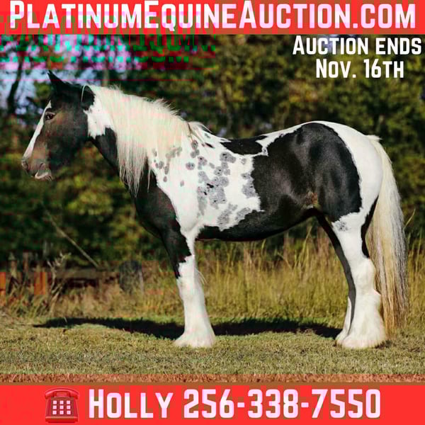 ONLINE AUCTION Place your bids at www.PlatinumEquineAuction.com Starting Bid $3500 Auction ends November 16th, 2025 Need a new saddle? Check out White Rock Saddles on our website or Facebook Louise- an ABSOLUTELY stunning 11 yr old, Gypsy Vanner mare broke for anyone, at any stage in riding. She is gentle, safe and beginner friendly. She is a seasoned trail mount and is as sure footed as you could ask for. She will wade through the water, walk through the thick brush, and safely go up or down steep inclines. Louise will lower her head and let you enjoy a nice, slow comfy trail ride all day long if you prefer. She is super easy to get along with- stands still to be tacked and mounted, loves a bath and to be groomed on. She trailers and hauls very well also. Most importantly she’ll have the same calm, gentle attitude every single day. Louise is the true definition of family friendly and an absolute confidence booster, not to mention easy on the eyes! Thelma’s ad (her best friend) is also up for viewing, so go check her out as well! They would love to stay together if possible and make someone a nice husband and wife, or mom and daughter pair! For more info contact Holly Dunivan 256-338-7550 with any questions. ONLINE AUCTION Place your bids at www.PlatinumEquineAuction.com Starting Bid $3500 Auction ends November 16th, 2025 Need a new saddle? Check out White Rock Saddles on our website or Facebook