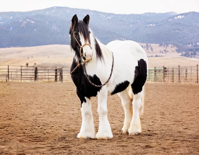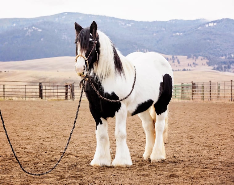 ONLINE AUCTION Place your bids at www.PlatinumEquineAuction.com Starting Bid $3500 Auction ends January 18th, 2026 Need a new saddle? Check out White Rock Saddles on our website or Facebook Lexlin’s Iceland (“Lexi”) – 13-year-old Registered Gypsy Vanner Mare | 14.1–14.2h Lexi is a true all-around Gypsy Vanner built for work and play. Standing 14.1–14.2 hands, she has the temperament, training, and heart to tackle trails, ranch chores, or long days in the saddle. She has a motor, loves covering ground, and can go all day, making her a dependable partner on any ranch. Calm and consistent, Lexi stands like a rock for grooming, bathing, and saddling, and loads into the trailer effortlessly. Big, solid feet and a sturdy build mean she holds up to thousands of miles with ease. Handy, versatile, and easy-going, she’s the kind of mare every barn wants. Under saddle, she offers a smooth walk/trot/canter, rides one-handed, backs easily, and side passes both directions to open gates. Sure-footed and confident over hills, obstacles, and new terrain, Lexi is ready for whatever the day brings. Built to last, talented, and a joy to ride, Lexi is the complete package! Please reach out with any questions or to set up a visit! Located in Winston, MT. Call Austin Grazier 720 378 3003 with any questions. ONLINE AUCTION Place your bids at www.PlatinumEquineAuction.com Starting Bid $3500 Auction ends January 18th, 2026 Need a new saddle? Check out White Rock Saddles on our website or Facebook