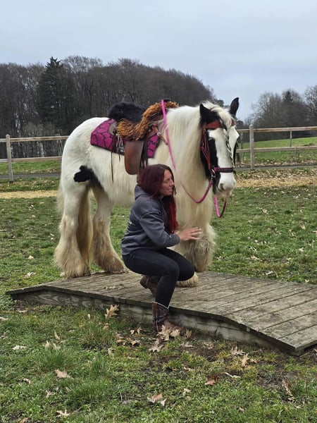 Lovely Tinker mare suitable for therapy, children-friendly, and a reliable leisure horse. Mossy is a sturdy small pony mare. Age: 15 years, born in 2011 Height: approximately 1.46 m (14.1 hh) Price: €4,500 Health certificate: available ✨ Description: This wonderful mare impresses with her balanced, friendly nature and calm demeanor. In daily handling, she is well-behaved, personable, and uncomplicated. Grooming, leading, and general stable routines are easy and pleasant. Under saddle, she is rideable and provides a good riding feel. She is especially calm and reliable in the terrain. She rides relaxed in the field and is suitable for longer hacks. She works motivated on the riding arena. Thanks to her gentle nature, she is an ideal partner for recreational riding. Suitable for: Leisure riders seeking a well-behaved, trail-safe mare. Also suitable for relaxed hacks, light groundwork, and reintegration riders who value an honest horse. Our horses are regularly: – wormed – attended by a blacksmith – osteopathically checked Farm shop: Western saddles, bridles & accessories Transport and equipment can be organized affordably upon request Our service: ✅ 3-month exchange guarantee ✅ Trial ride: €35, each additional horse €25 (credited if purchased on the same day) ✅ €100 immediate discount for pickup or transport on the same day ✅ Personal & honest advice Please contact us exclusively by phone: 0171 – 4001968 Available daily from 8 a.m. to 8 p.m. ⚠️ No emails or WhatsApp messages ⚠️ All information without guarantee