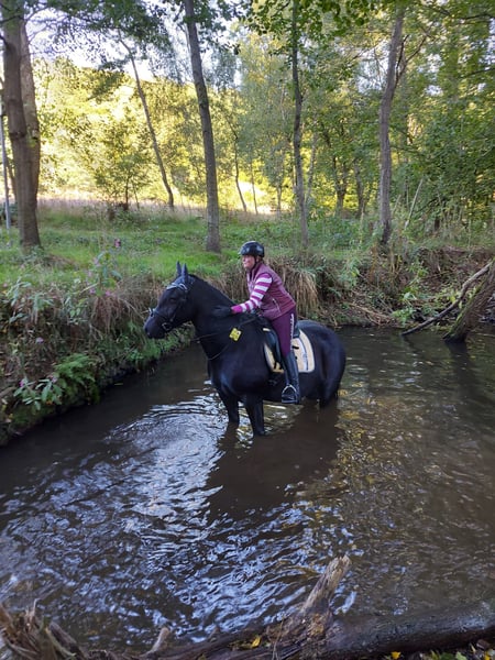 Ich verkaufe meine 15 jährige Stute (Barhuf) aufgrund meiner Gehbehinderung, da ich ihr reiterlich einfach nicht mehr gerecht werde. Sie ist keine Schlaftablette, ist sehr motiviert und umweltorientiert und hat für mich einfach zu viel Go. Sie ist topfit, absolut ehrlich und sehr menschenbezogen. Am liebsten ist sie im Gelände unterwegs, mit einem sicheren Reiter geht sie auch alleine raus. Ich habe sie nun seit 6 Jahren und würde sie auch behalten, allerdings ist sie kein Pferd zum "rumstehen". Sie möchte Beschäftigung und macht alles gerne mit (Bodenarbeit, longieren, Stangenarbeit, Cavalletis, Spaziergänge, Ausritte, Freispringen). Ich gebe sie nicht an Reitschulen und Händler ab, da sie mit so vielen wechselnden Reitern nicht zurecht kommt. Sie ist sehr sensibel und feinfühlig, sodass sie ein oder zwei feste Bezugspersonen braucht.