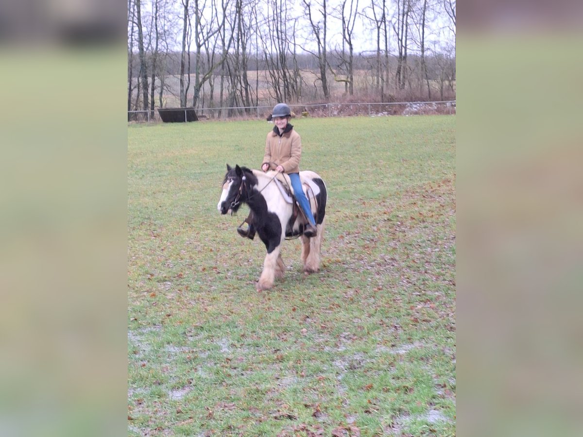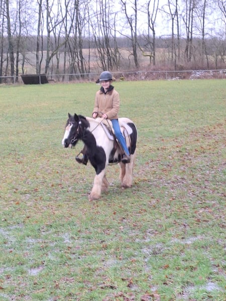 Snoopy ist eine 1,25 m kleine Tinker Stute. Sie lief bei mir jahrelang im Pony Workshop und war dort immer super mit Kindern. Seit Corona wird sie bei uns im Einspänner gefahren. Sie geht mit meiner 14 jährigen Tochter alleine ins Gelände und geht dort Schritt Trab und Galopp ohne Probleme. (Geritten und gefahren) Sie läuft bei uns seit Jahren mit Eisen, da sie hinten Bockhufe hat. Ist Schmiede und verladefromm. Fahrt auch ohne Probleme alleine Anhänger. Meine Tochter ist sie schon auf einem kleinen Turnier alleine gefahren und sie war bereits mehrfach auf unserem Veitsrother Markt ausgestellt und auch im fahren vorgeführt worden. Das hat sie total entspannt gemacht. Letztes Jahr hat sie angefangen sich auf der einen Koppel am Rücken zu scheuern. Mit No juck No shoop aber kein Thema mehr. Probereiten und fahren gegen Gebühr möglich. Wird beim Kauf verrechnet. Sie steht in einer gemischten Herde im Sommer 24/7 draußen und im Winter im Offenstall. Ist Rang niedrig.