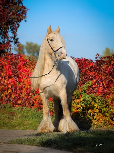 *Pretty palomino irish cob filly *A real heavy colt with abundance of feather *Built like a tank. *PSSM1 NEGATIVE/ COLOUR TESTED *BREEDING RECORDED, registered ICS NL the last two photos show the parents Transport anywhere can be arranged https://www.facebook.com/ZaliaStudGypsyCob WhatsApp: +48692773434 www.zaliastud.com