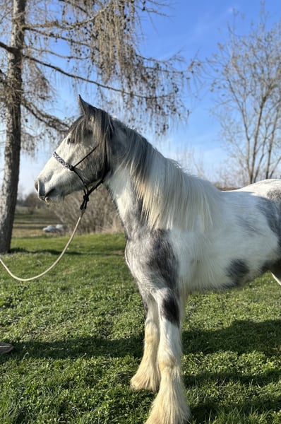 Born in 2023, this Irish Cob mare is looking for her new home. She stands approximately 1.45 meters at the withers. Currently, she walks calmly in basic gaits and is in ongoing training. Having grown up in a large herd, she is well-socialized and gets along well with other horses. The mare has already been ridden in small groups on the trail and is now being introduced to riding in the arena. She also comfortably carries larger riders. Additionally, she is farrier and loading friendly. If you are interested in this lovely mare, please feel free to call. For a visit with a preliminary ride and trial ride, we charge €40, which will be fully refunded upon purchase of the horse. We kindly ask for your understanding. TEL.: 01709343872