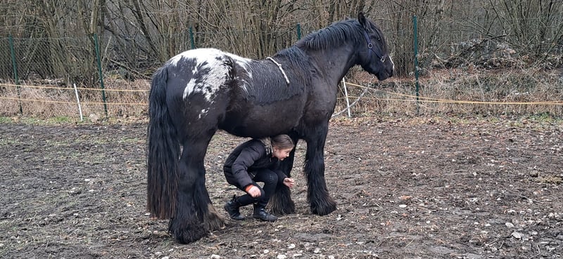Verkaufe eine bezaubernde Tinker-Stute, geboren im Jahr 2023. Diese junge, vielversprechende Stute besticht durch ihr eindrucksvolles Tigerscheck-Muster, das sofort ins Auge fällt. Mit einem Stockmaß von 153 cm ist sie bereits jetzt gut bemuskelt und zeigt viel Potenzial für die weitere Entwicklung. Die Tinker-Stute ist ideal für den Freizeitbereich geeignet. Sie ist gut sozialisiert, freundlich im Umgang und zeigt sich bei der täglichen Pflege sowie beim Herumtollen im Offenstall stets ausgeglichen und angenehm im Wesen. Ihr robustes Fundament und ihre angenehme Art machen sie zu einer zuverlässigen Begleiterin für alle, die Freude an einem vielseitigen Freizeitpferd haben. Diese junge Tinker-Dame ist perfekt für alle, die auf der Suche nach einem charmanten, gutmütigen Pferd mit viel Charakter sind. Sie bietet eine hervorragende Basis für eine spätere Ausbildung und ist bereit, gemeinsam mit ihrer neuen Familie die Welt zu erkunden. Sie kennt bereits das Auf- und Ab-Sitzen sowie Schritt und Trab. Handpferd, Spaziergänge auch alleine und alles, was auf dem Hof passiert, ist sie immer gelassen und war immer gesund und munter. Schmied ,Hunde ,Traktoren alles kein Problem. Sie hat die Ruhe weg.
