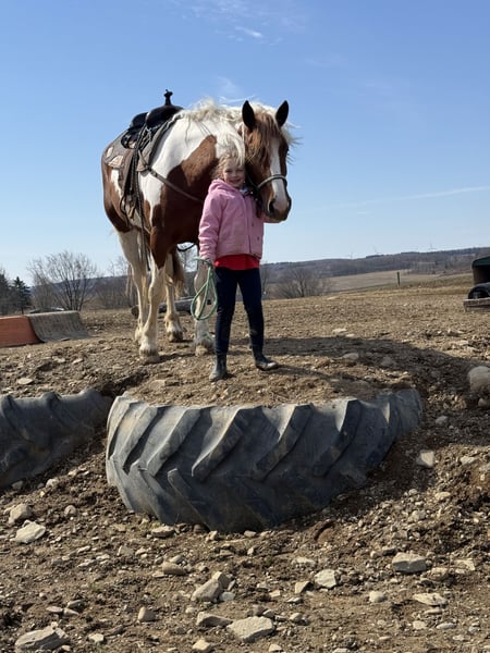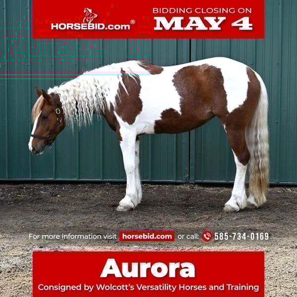 ▪️▫️◾️𝐭𝐡𝐞 𝑴𝒂𝒚 𝐒𝐞𝐥𝐞𝐜𝐭◾️▫️▪️ Happening now thru MONDAY | MAY 4th - Available EXCLUSIVELY on HorseBid's website! For more details and to register visit: www.Horsebid.com CONSIGNOR CONTACT: Wolcott’s Versatility Horses and Training 585-734-0169 LOCATION: Warsaw, NY BREED: Gypsy Cross REGISTERED: No COLOR: Paint HEIGHT: 15.2 AGE: 4 GENDER: Mare Aurora is a 4-year-old, 15.2hh Gypsy/ QH cross paint mare. Not only does she have the beauty, but she was blessed with brains, too! She rides both English and Western. She always cares for her riders and is a lovebug on the ground. She is a rose among the thorns and one of the nicest mares you will meet. On the trail, Aurora has packed a variety of riders, from complete beginners to advanced riders! She is careful, slow, and surefooted. She is always happy to go out and is ready for any adventure. We have ridden her all over through the woods, along the road, in open fields, and into the pond; She’s as unflappable. She’s in no rush and enjoys taking in the sights for a relaxing ride. She’s as comfy as a couch and has the smoothest walk, trot, and canter. Even if you aren’t a “mare person,” we can guarantee Aurora will change your mind. She’s lovely and kind in every way. Aurora is also fantastic in the ring! This girl is very hard to find a flaw in. She’s happy to mosey around on a loose rein but will collect up when asked. Her brakes are impeccable; she will stop on a dime with just a “whoa” or a shift of your seat. She’s packed around the kids and adult beginners like a champ. She’s lovely over jumps and is so easy to jump. We’ve been keeping it light with the jumping because of her age, but we couldn’t ask her to do any better. She’ll pop over cross rails and small verticals in the ring and has even been out cross-country schooling! She is cute and honest in every way. She could easily excel in fox hunting or lower-level dressage. She has the proper foundation to go in any direction. On the ground, Aurora is safe to work around. The kids can run around her, brush her, lead her in and out of the field, and tack her up. She loves people; in the barn, her head is always hanging out of her stall looking for attention. She is well-behaved for the vet and farrier and loads right into the trailer. Aurora is the one if you want a solid young horse that you don’t have to worry about and can relax on! She’s quickly become a barn favorite, and we have no doubt she will thrive in any environment! She has zero vices. Contact Dayton at 585-734-0169 for more information on Aurora. Located in Warsaw, NY