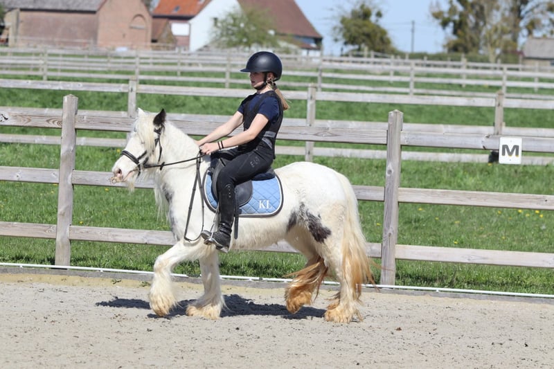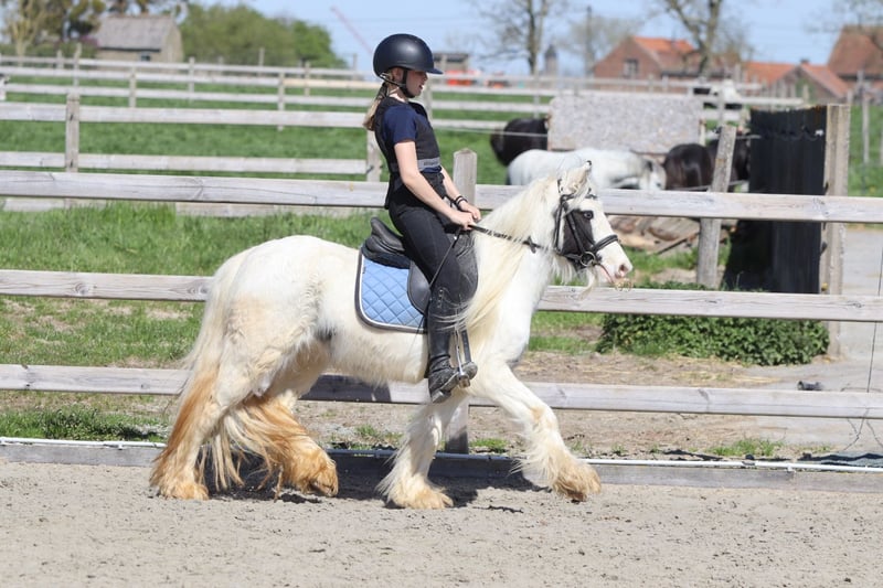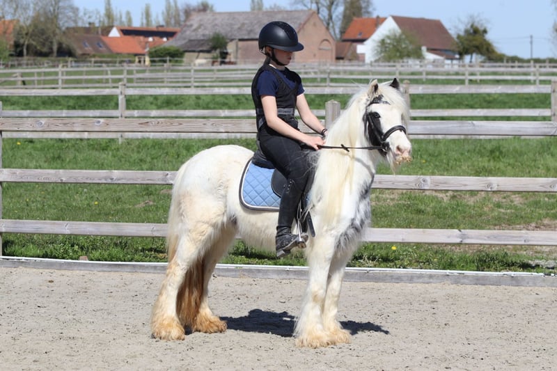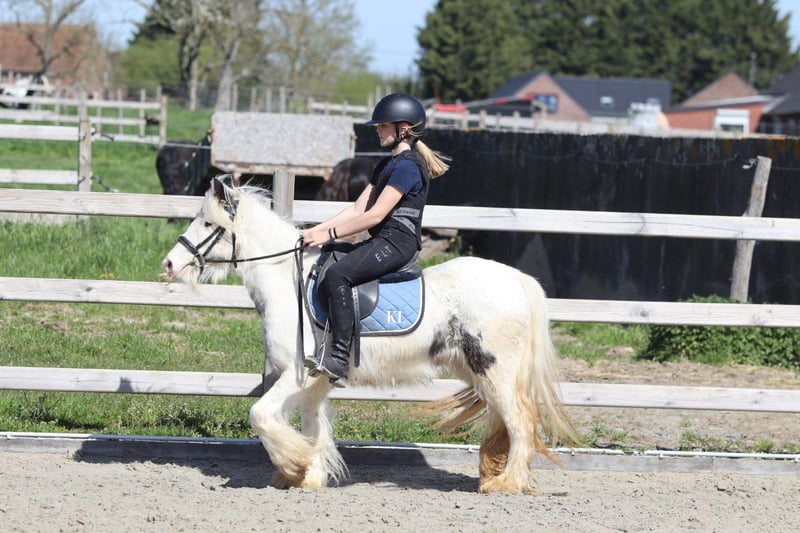🌸🐴 Tinker poney Molly, adorable et au caractère doux ! 🐴🌸 Faites la connaissance de Molly 💕 Une Tinker poney très spéciale avec un magnifique œil bleu en forme de maanoog 😍✨ ✨ 5 ans ✨ Jument ✨ Environ 1,22 m Molly est bien dressée en dressage classique 🐎 Elle aime aussi sauter et se montre très à l’aise en balade en extérieur, seule ou en groupe 🌳🐴 Elle a une tête extrêmement mignonne 🥰 Elle s’entend très bien avec d’autres poneys 🐴💛 Et… elle peut rester des heures immobile pour se faire chouchouter et laver 🧼🪮💖 En résumé : une véritable petite chérie et une ponette câline ! 🧸🐴 📞 Plus d’infos ? WhatsApp ou téléphone : 0032475682243 🎥 Pour des vidéos : demandez notre site internet