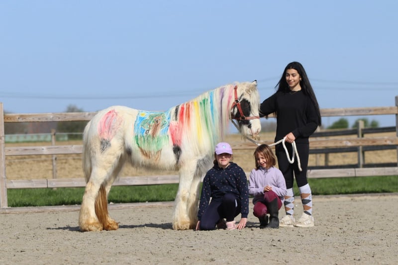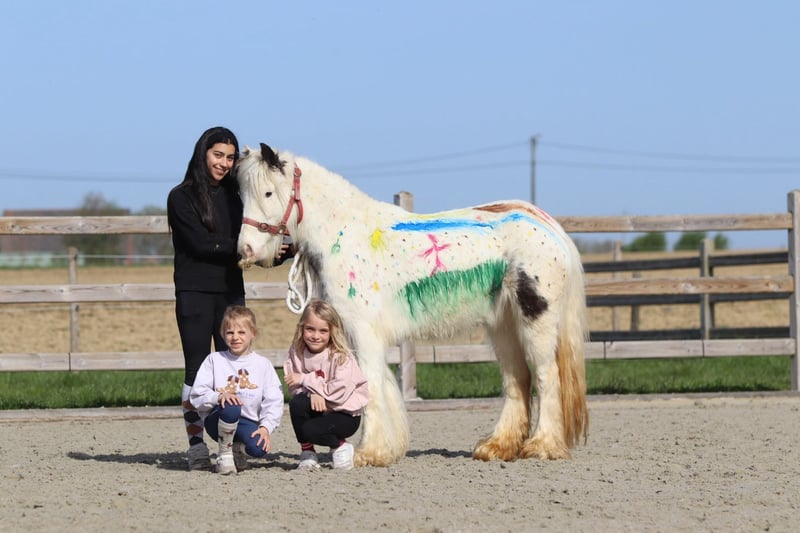 🌸🐴 Tenera pony Tinker Molly! 🐴🌸 Conoscete Molly 💕 Una pony Tinker speciale con un bellissimo occhio blu a mare 😍✨ ✨ 5 anni ✨ Femmina ✨ Circa 1,22 m Molly è stata dolcemente montata nei tre andamenti 🐎 Le piace anche saltare e si muove con facilità durante le uscite a cavallo, sia da sola che in gruppo 🌳🐴 Ha un musetto davvero adorabile 🥰 Va d’accordo con gli altri pony 🐴💛 E… può stare ore ferme a farsi coccolare e lavare 🧼🪮💖 Insomma: una vera coccolona e pony da coccole! 🧸🐴 📞 Per maggiori informazioni? WhatsApp o chiamare: 0032475682243 🎥 Per video: chiedi sul nostro sito