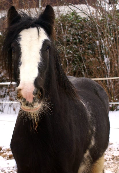 Knuffige black blagdon Tinkerstute, auffällige Optik mit schönem Exterieur, brav angeritten, hat Freude an Freispringen und springt auch mit toller Art, kennt Hunde und Traktoren, gibt brav Hufe, keine Rehe oder Mauke, artig im Umgang und unter dem Sattel