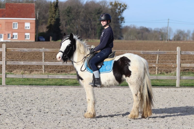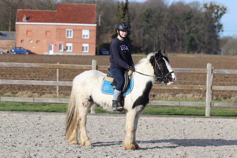Betty Bo est une adorable pony pour enfants, avec une tête douce et un caractère agréable. Elle a 5 ans et mesure 1,33 m, une taille idéale pour les jeunes cavaliers qui recherchent une pony fiable. Dans la vie quotidienne, c’est une pony vraiment facile : elle est sage lors du pansage et du bridage, et les enfants peuvent la sortir eux-mêmes du box. Elle est douce, calme et apprécie toute l’attention qu’on lui porte. En carrière, Betty Bo maîtrise parfaitement les trois allures et aime également sauter. En extérieur, elle aime faire des promenades, seule ou en groupe. 📞 Plus d’informations ? 0032 475 682 243 🎥 Pour des vidéos : demandez notre site internet