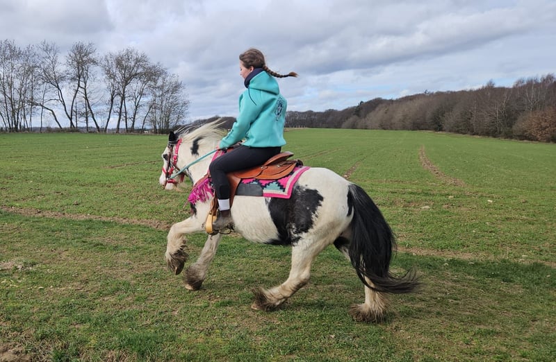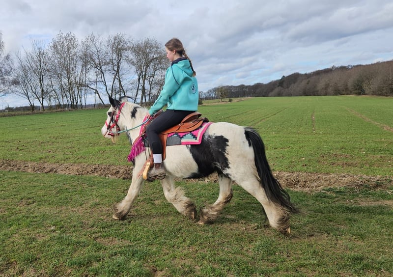Tinker Stute – brav, gelassen & vielseitig einsetzbar, auch für Therapie geeignet LEA-SUSI Alter: 5 Jahre Stockmaß: ca. 1,35 m Preis: 4900,- AKU: vorhanden ✨ Beschreibung: Diese charmante Tinker Stute ist ein richtig nettes Pony, das nahezu jeden Spaß mitmacht. Sie überzeugt durch ihr freundliches, ausgeglichenes Wesen und zeigt sich im täglichen Umgang brav, unkompliziert und menschenbezogen. Unter dem Sattel ist sie nett geritten, kooperativ und angenehm zu reiten. Ob auf dem Platz oder im Gelände – sie zeigt sich gelassen und macht ihrem Reiter einfach Freude. Durch ihre ruhige, geduldige Art ist sie sehr zuverlässig und lässt sich auch in neuen Situationen nicht aus der Ruhe bringen. Perfekt für: Kinder, Jugendliche oder kleinere Erwachsene, die ein liebes, verlässliches und vielseitiges Pony suchen. Ideal für Freizeit, Ausritte, Bodenarbeit und alles, was gemeinsam Spaß macht. Aufgrund ihres ausgeglichenen Charakters und ihrer großen Gelassenheit ist sie auch interessant für den Einsatz im therapeutischen Reiten, da sie wirklich brav ist und vieles geduldig mitmacht. Unsere Pferde werden regelmäßig: – entwurmt – vom Schmied betreut – osteopathisch kontrolliert Transport auf Wunsch günstig organisierbar Anfragen bitte ausschließlich telefonisch: 0171 – 4001968 Erreichbar täglich von 8–20 Uhr ⚠️ Keine E-Mail oder WhatsApp ⚠️ Alle Angaben ohne Gewähr